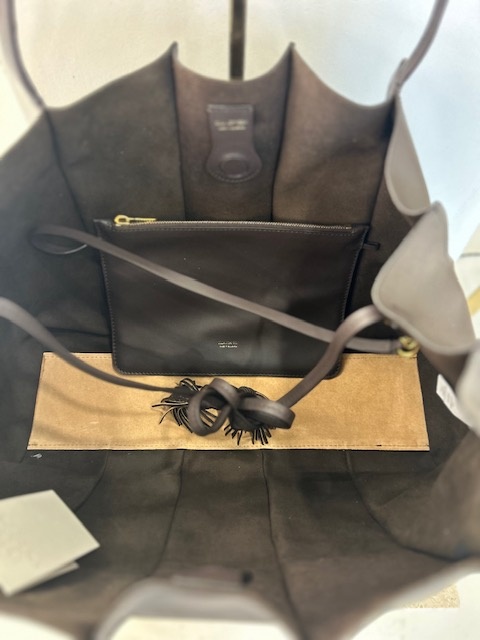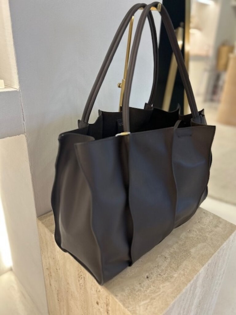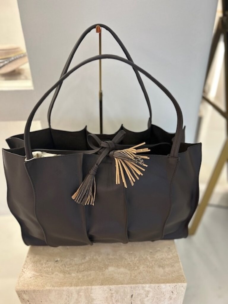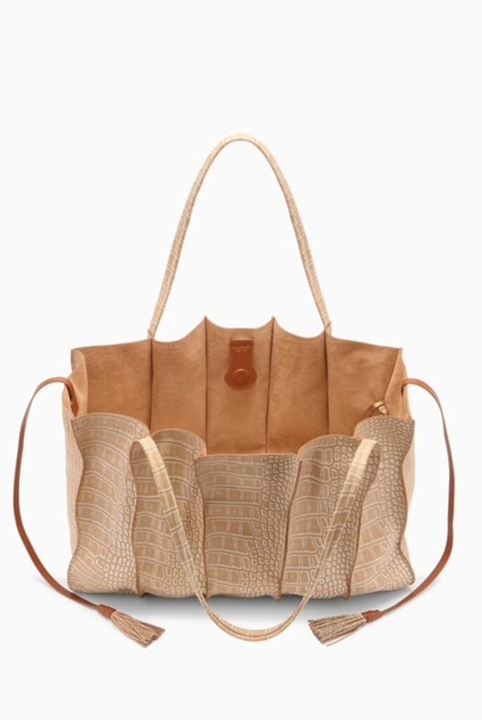 Re-envisioned as a spacious tote, the Adria is made in Italy from undulating leather panels sewn together and adorned with painted edges, enhancing the sculptural waves. Designed with functionality in mind, this brown shoulder bag features sumptuous croc embossing and padded straps for all-day comfort. Internal ties with hand-rolled tassels complete this everyday essential.
