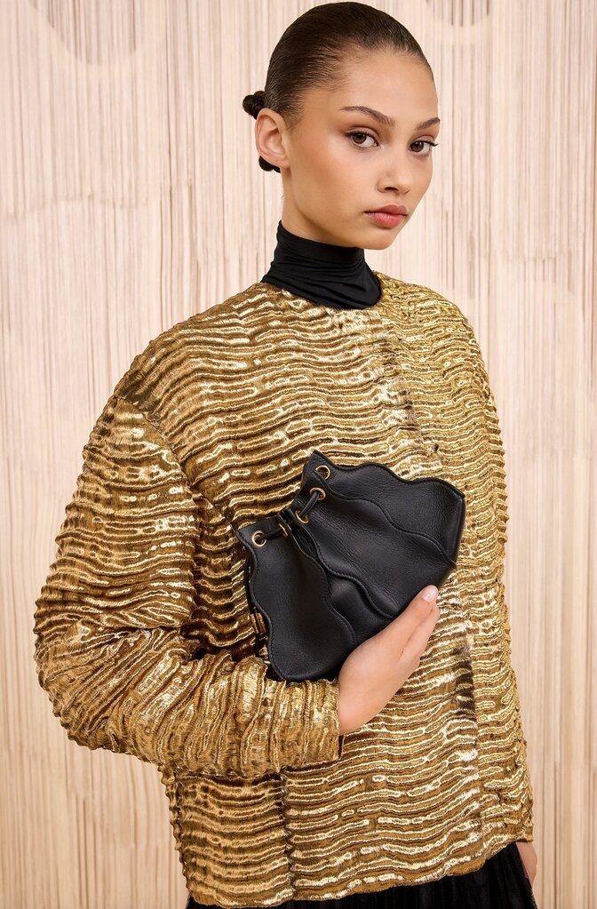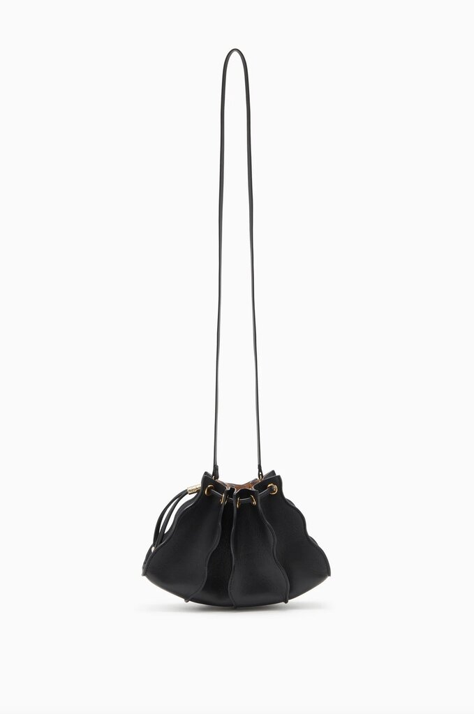 The Adria Crossbody is an iconic signature crafted from panels of leather sewn together and finished with painted edges, emphasizing the beauty of the waves. Refined in black for optimal versatility, this sculptural accessory features a drawstring opening and a removable shoulder strap for crossbody or wristlet wear.