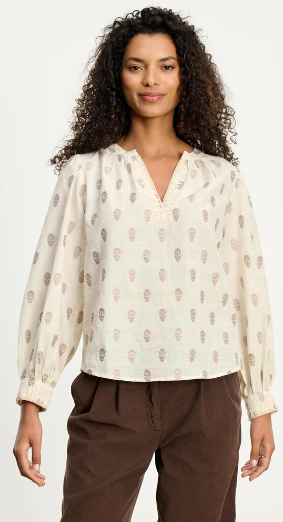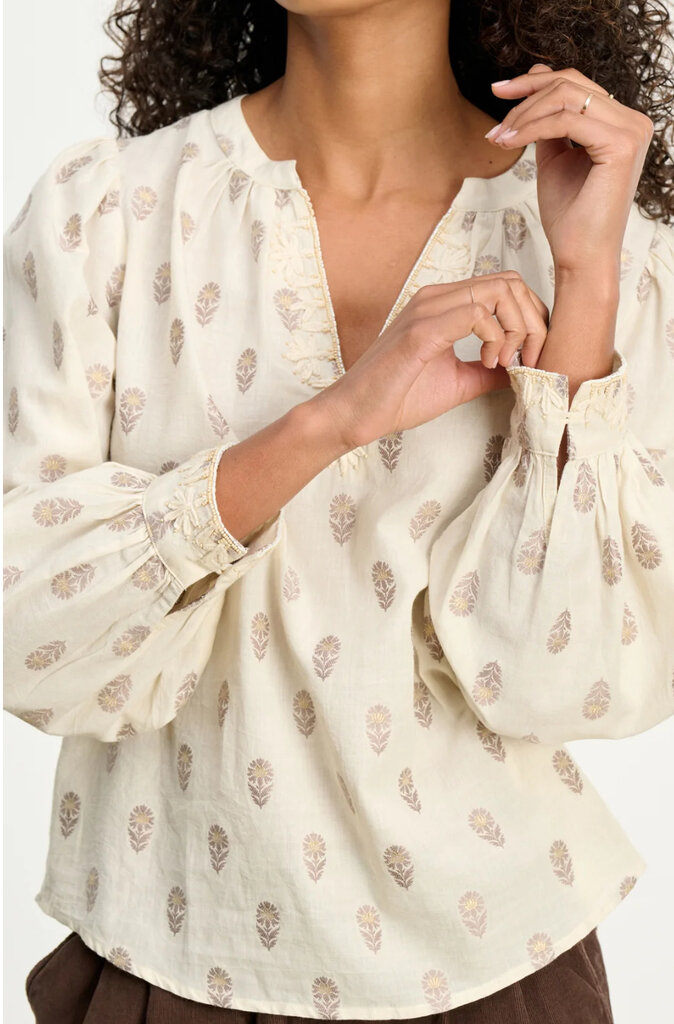 Boho-inspired with intricate embroidery and delicate beaded accents at the neckline and cuffs, this top is made from lightweight cotton and features a flattering V neckline and a scoop hemline for a relaxed, layered look.