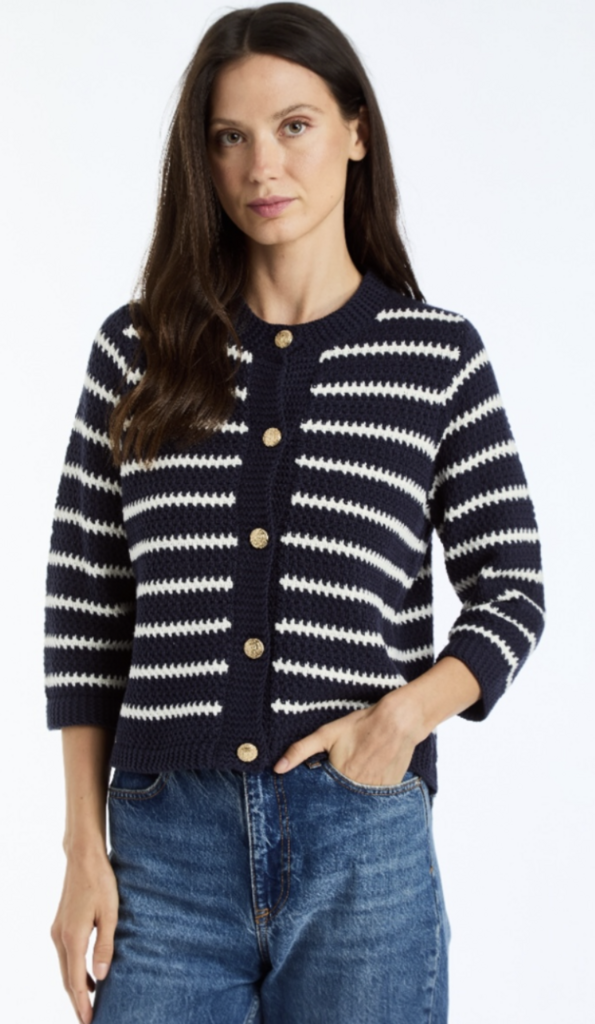 Aniyah Cardigan by Drew is a classic knit featuring a round neckline and elegant three-quarter sleeves. Soft and versatile, it's an easy layering piece that pairs effortlessly with denim, skirts or tailored pants.