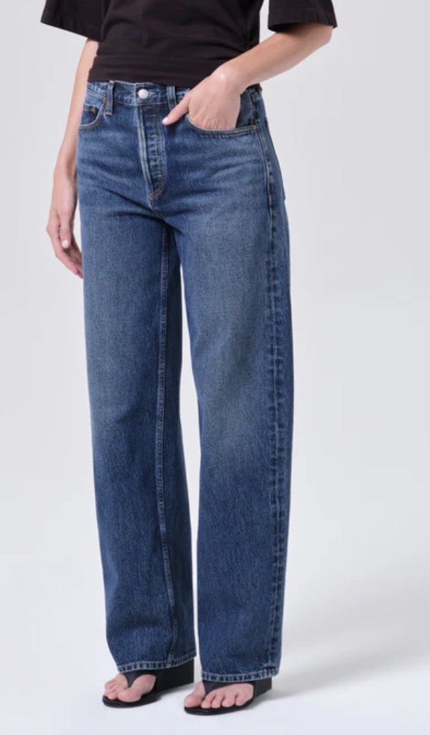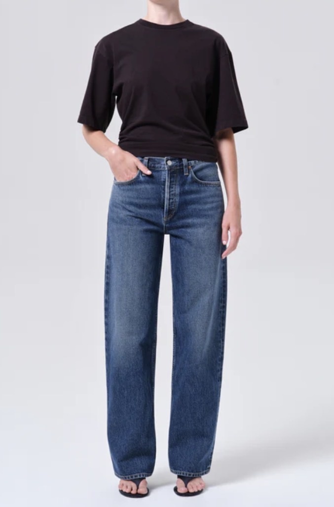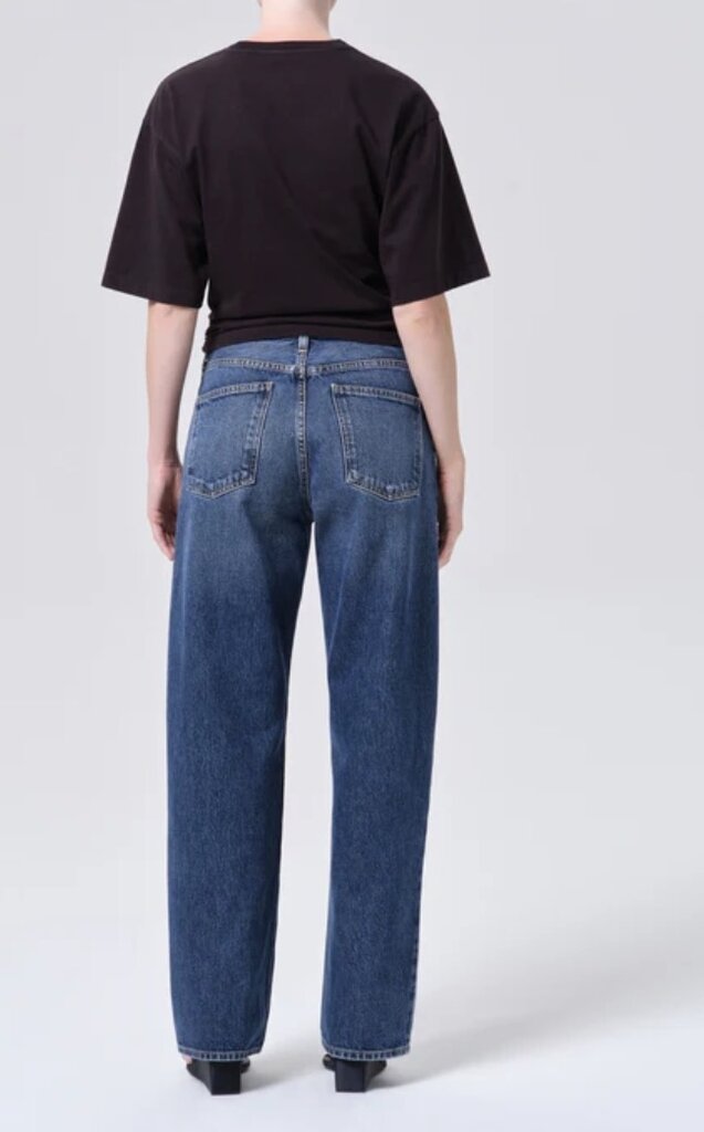 The Agolde Arc Jean in Shortwave features a flattering high rise and subtle curved leg that creates a modern, sculpted silhouette. Crafted in rigid denim with a 32" inseam, this deep vintage-inspired wash pairs effortlessly with anything.