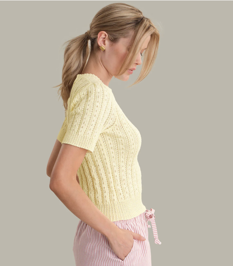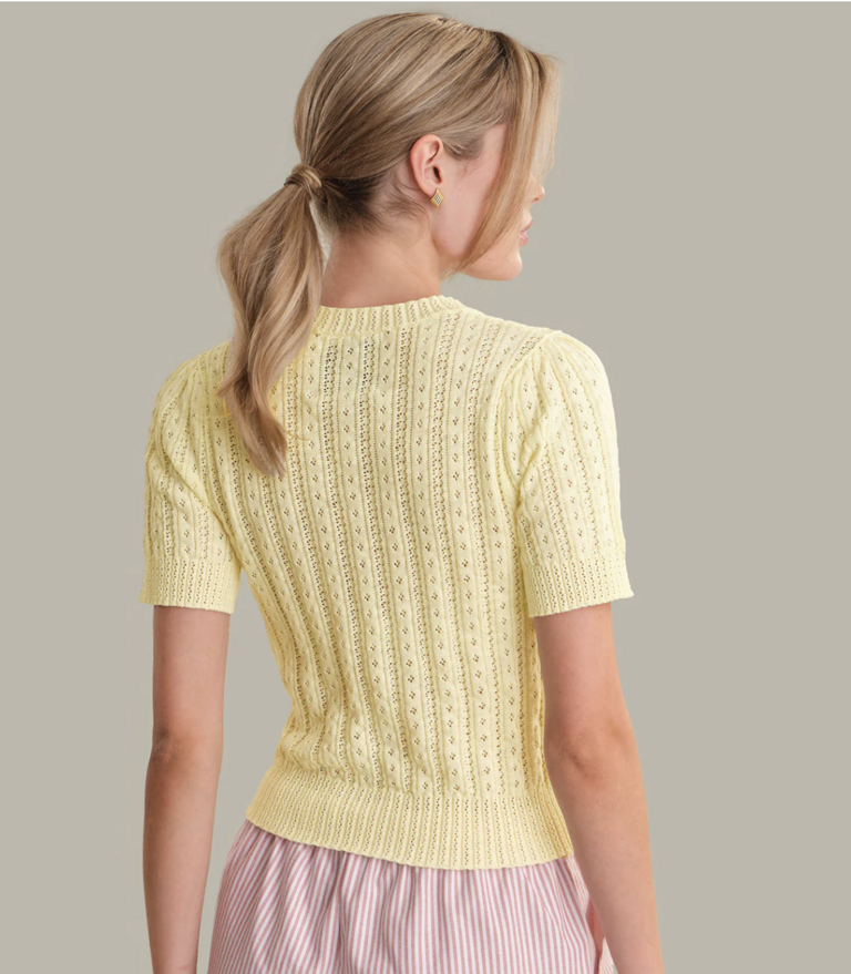 Complete your wardrobe with this lightweight pointelle-knit sweater, designed for effortless everyday wear. Delicate pointelle detailing adds subtle texture, while puffed shoulders create a soft, feminine silhouette with just the right amount of shape.