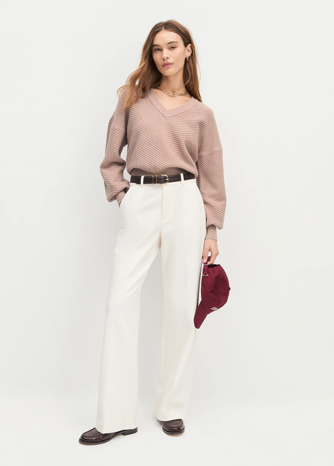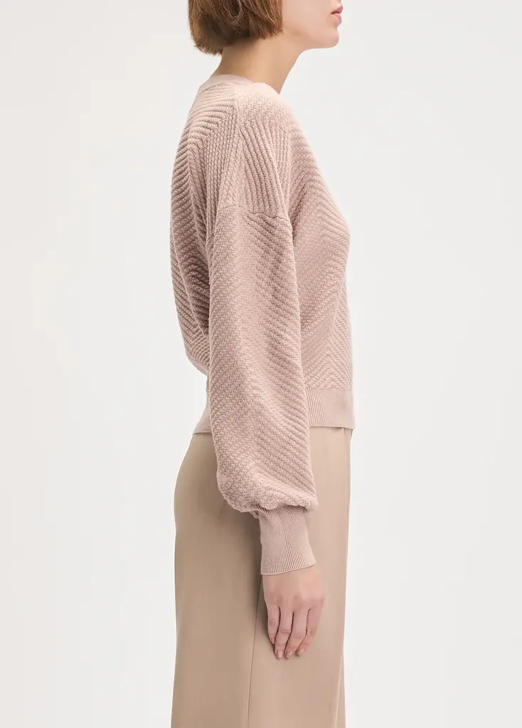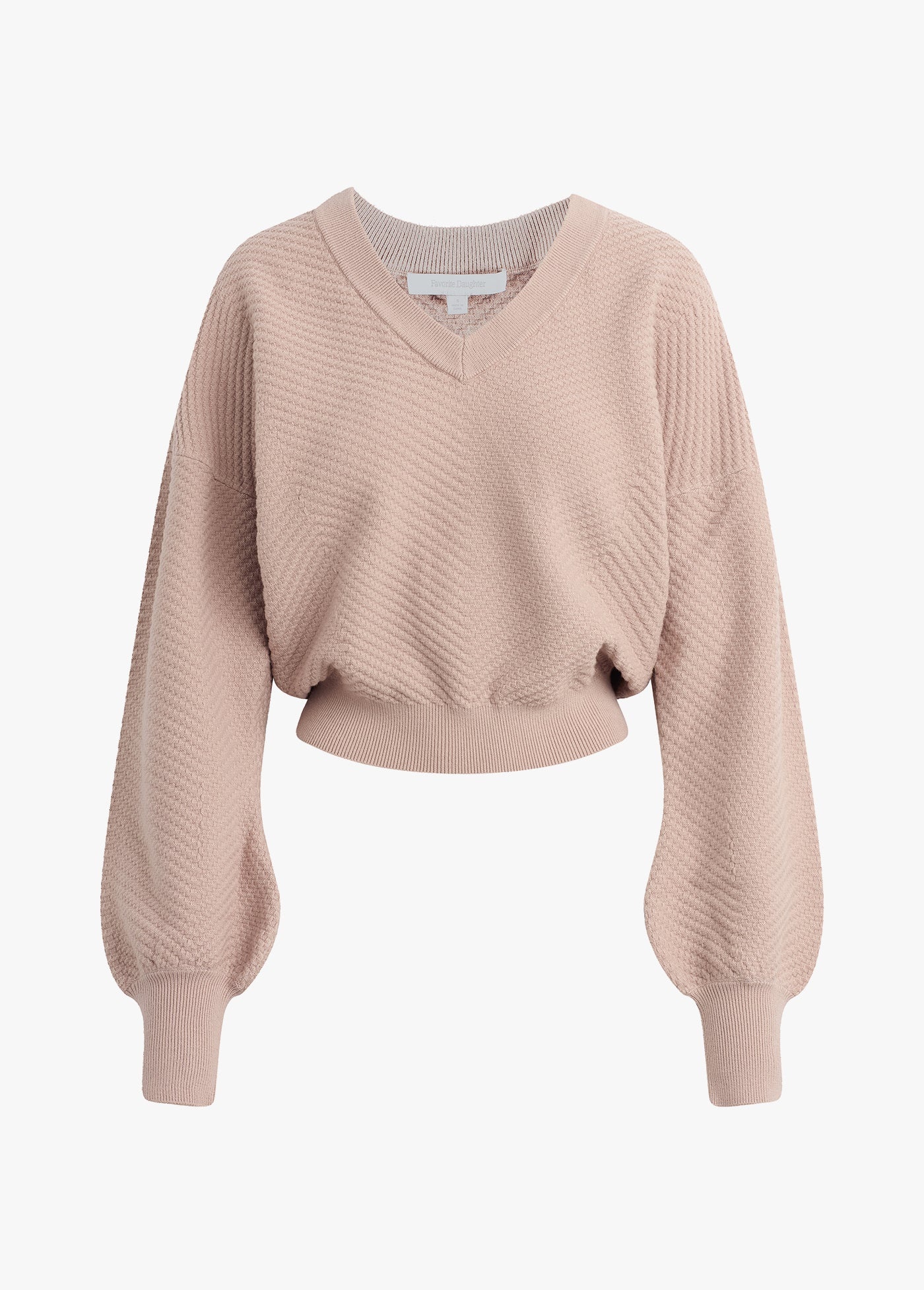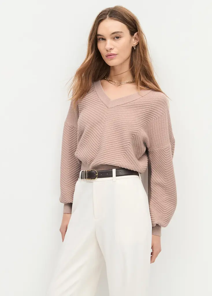 Your other sweaters are about to get jealous. The Ava Top features a chevron stitch, blouson waist and just the right amout of volume in the sleeves. Slightly cropped, seriously cute.
