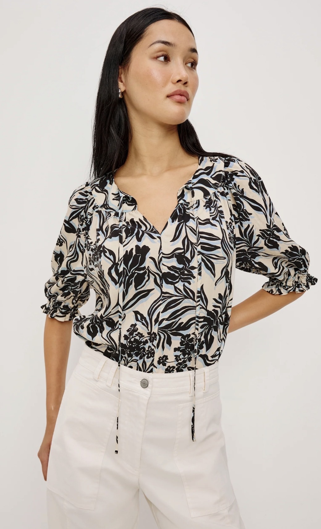 A fresh spring blouse in the Zinya print, the Belina Top offers effortless polish with a lightweight feel-perfect for coastal days and easy weekend styling.