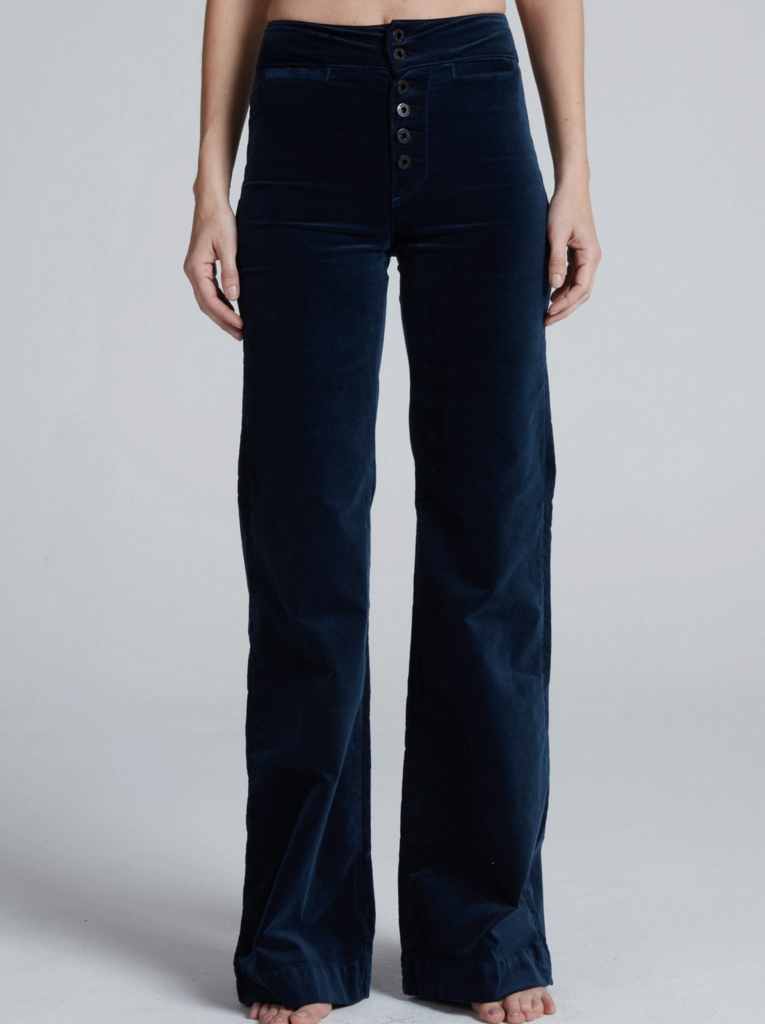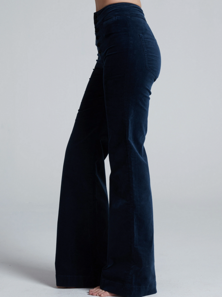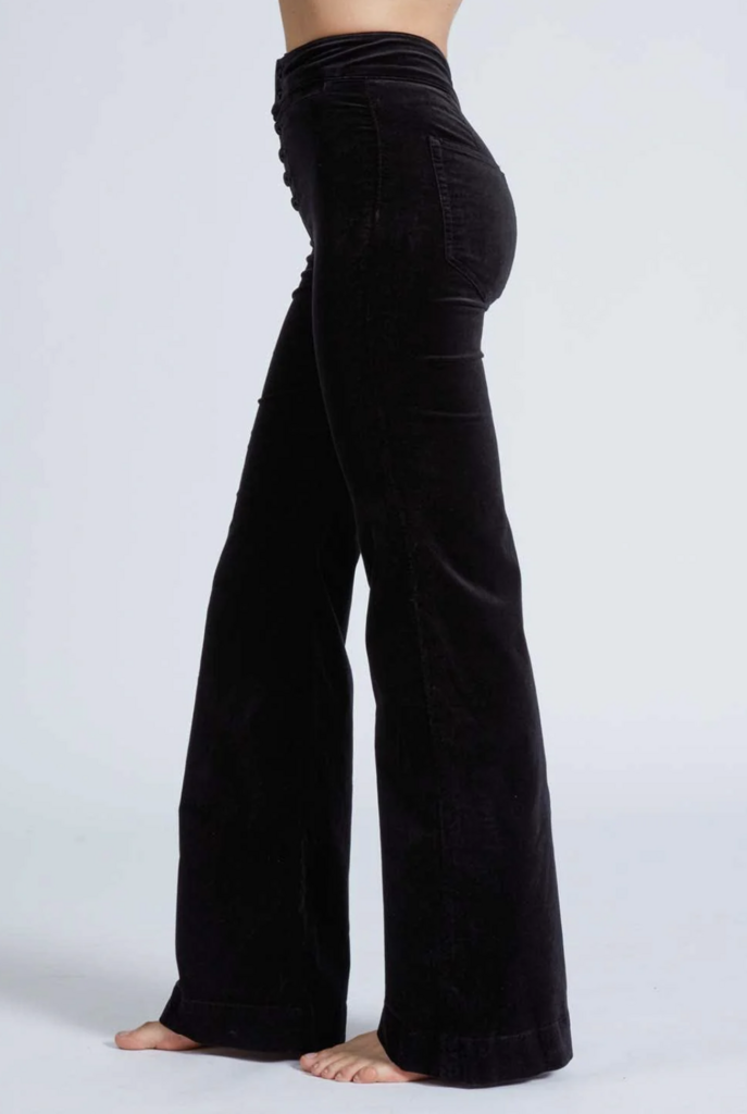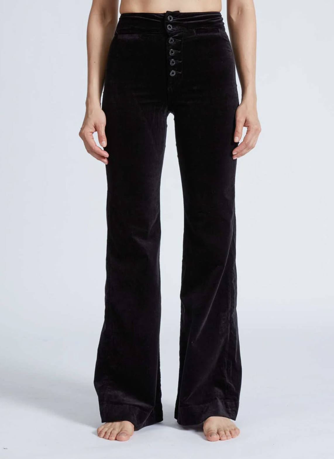 The Brighton is a modern take on a ‘70s silhouette—designed with a high rise, clean lines, and a dramatic wide leg. Reimagined in soft stretch velvet, this style adds richness and dimension to the classic Brighton shape. Finished with button-front detailing and an elongated inseam, it balances vintage polish with a touch of everyday ease.