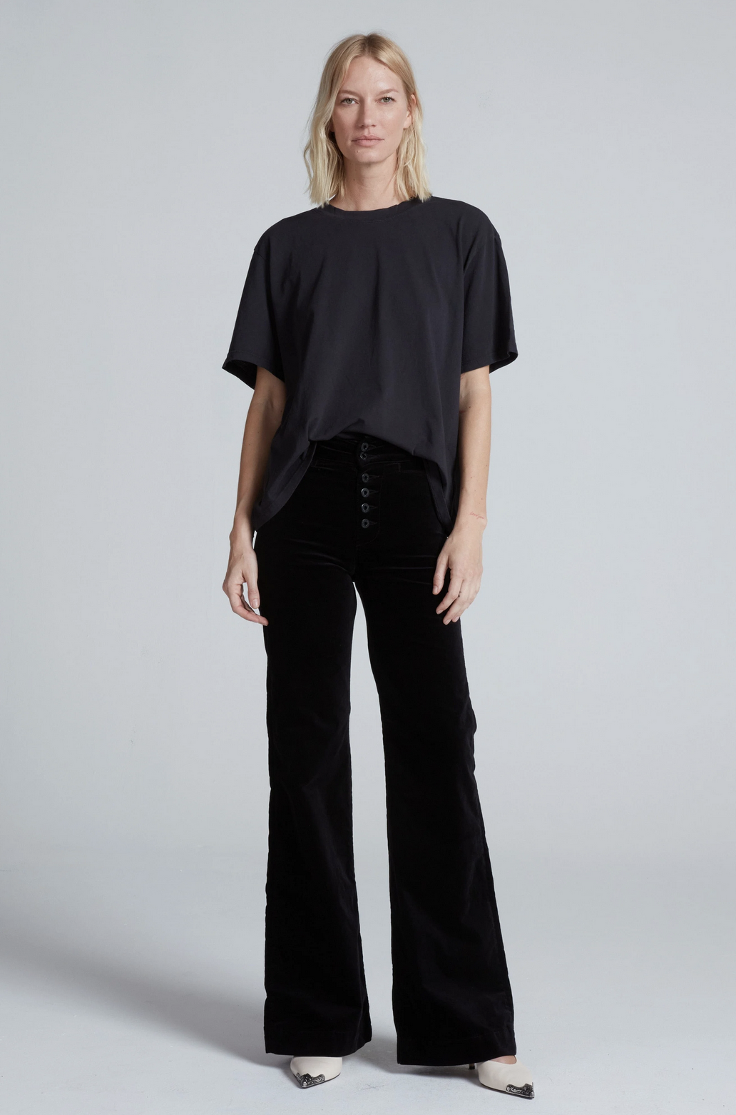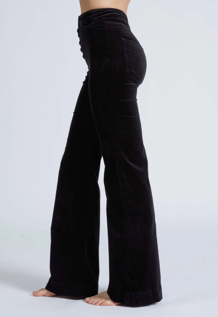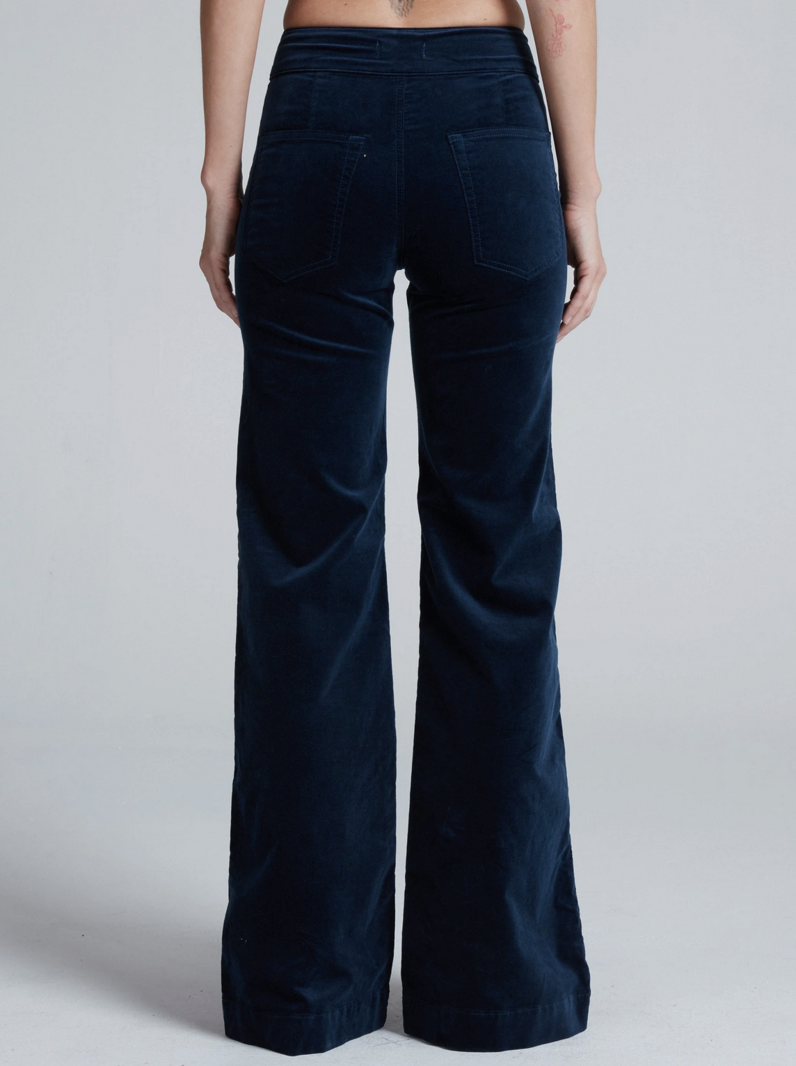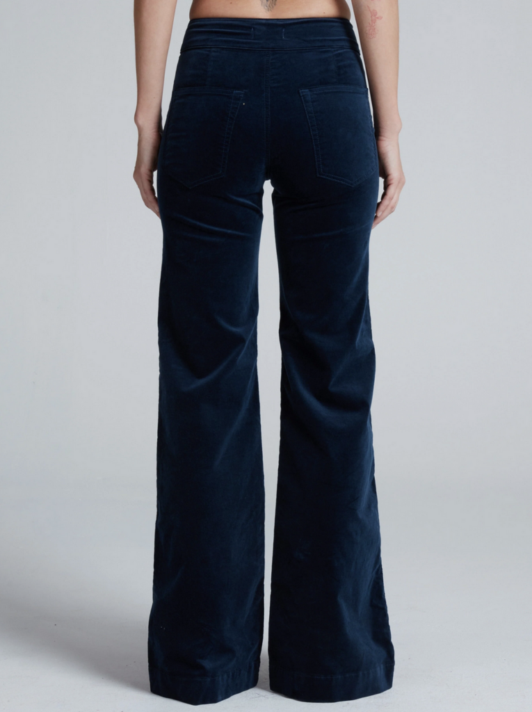 The Brighton is a modern take on a ‘70s silhouette—designed with a high rise, clean lines, and a dramatic wide leg. Reimagined in soft stretch velvet, this style adds richness and dimension to the classic Brighton shape. Finished with button-front detailing and an elongated inseam, it balances vintage polish with a touch of everyday ease.