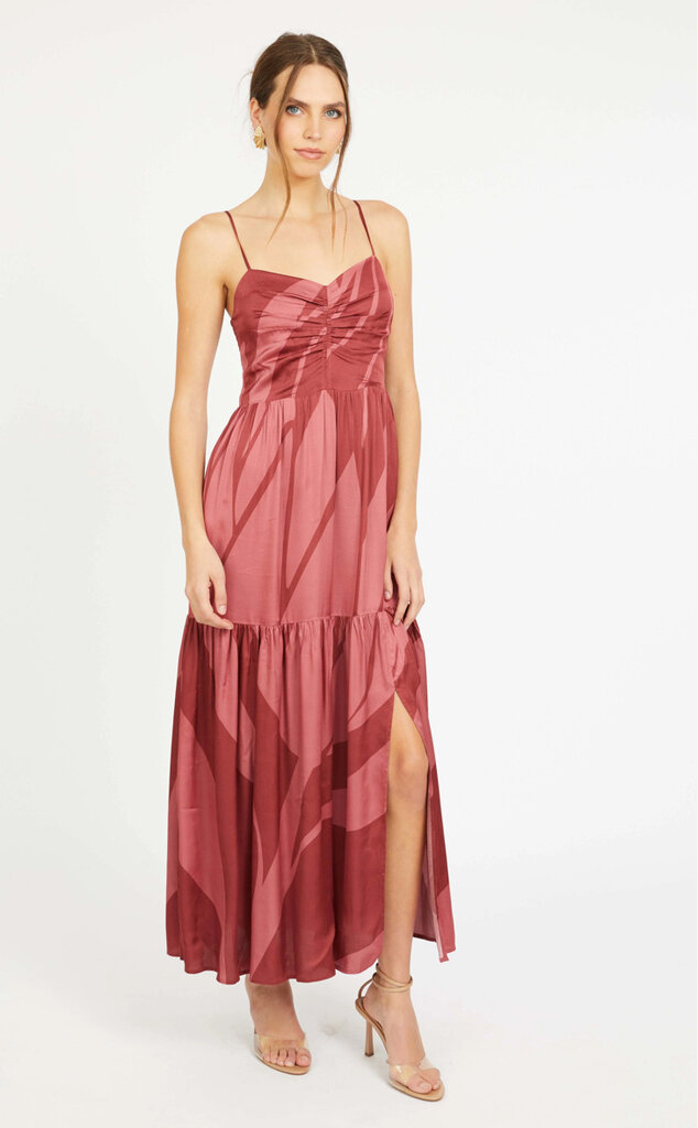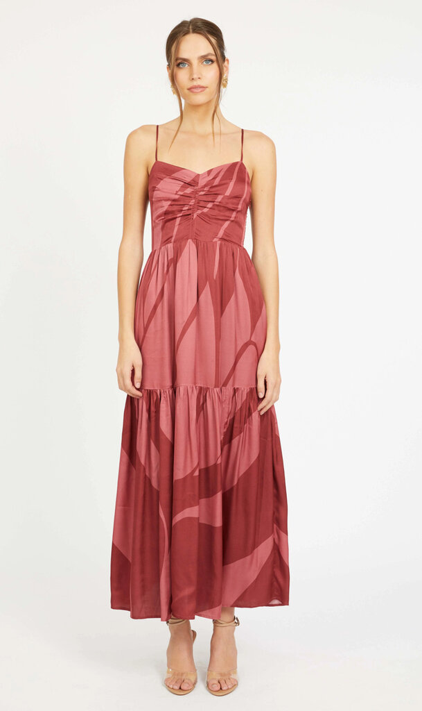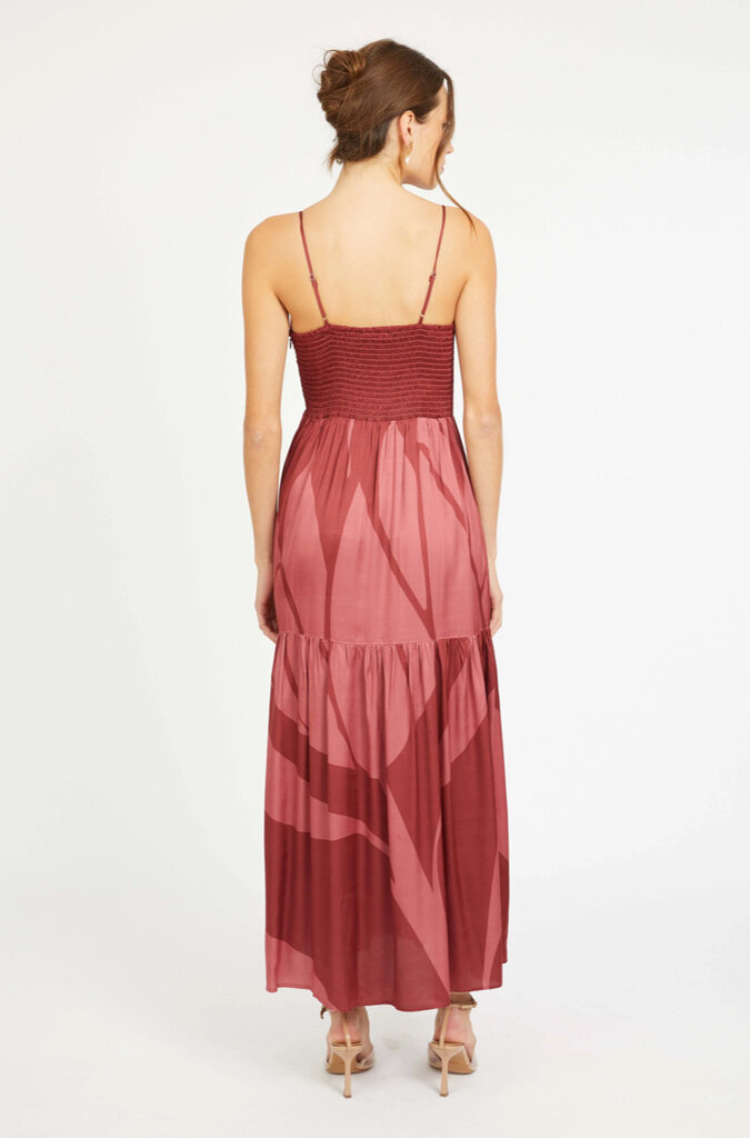 The Britt dress is made from a soft viscose twill and designed with an easy, flowy silhouette. This ankle-length style features a ruched front, adjustable straps, a side slit, and a smocked back for added comfort and flexibility.