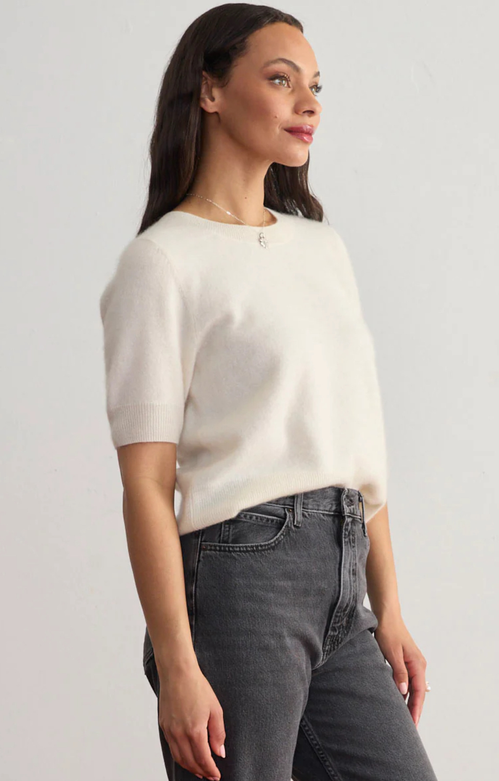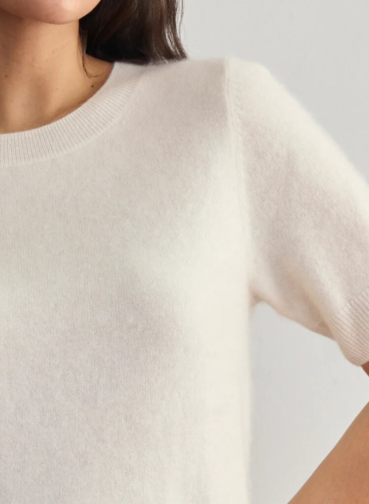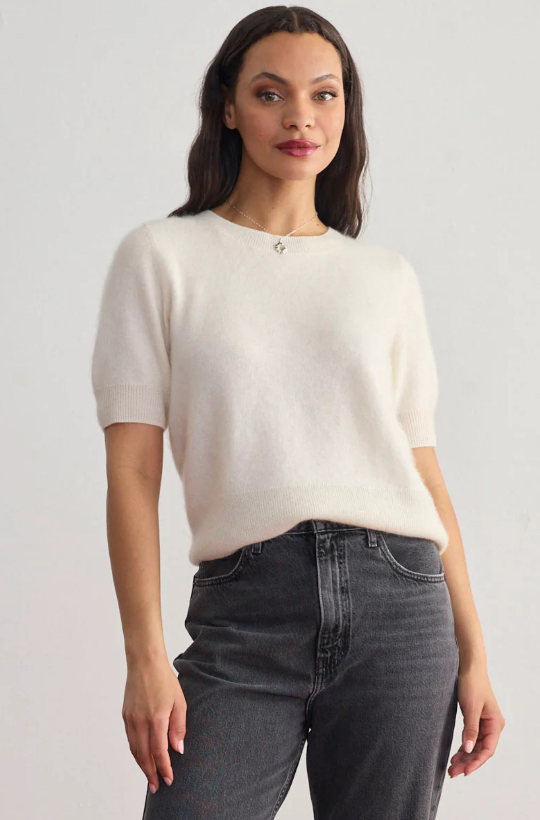 Inspired by the street style of Margaret’s Copenhagen travels, the Brushed Cashmere Tee blends everyday simplicity with refined texture. The short sleeves and softly brushed finish bring dimension and movement to a classic silhouette — wearable, light, and endlessly versatile.