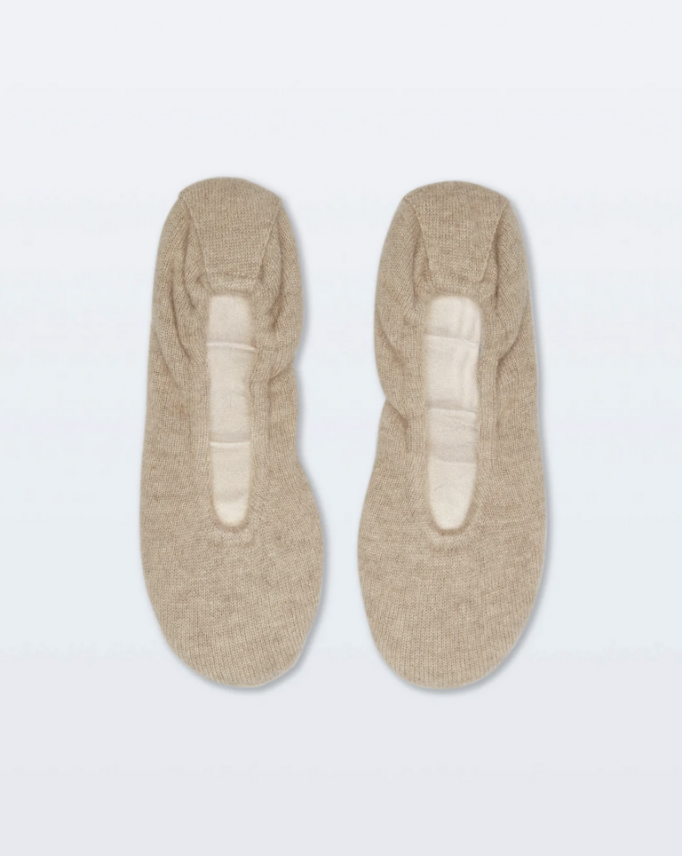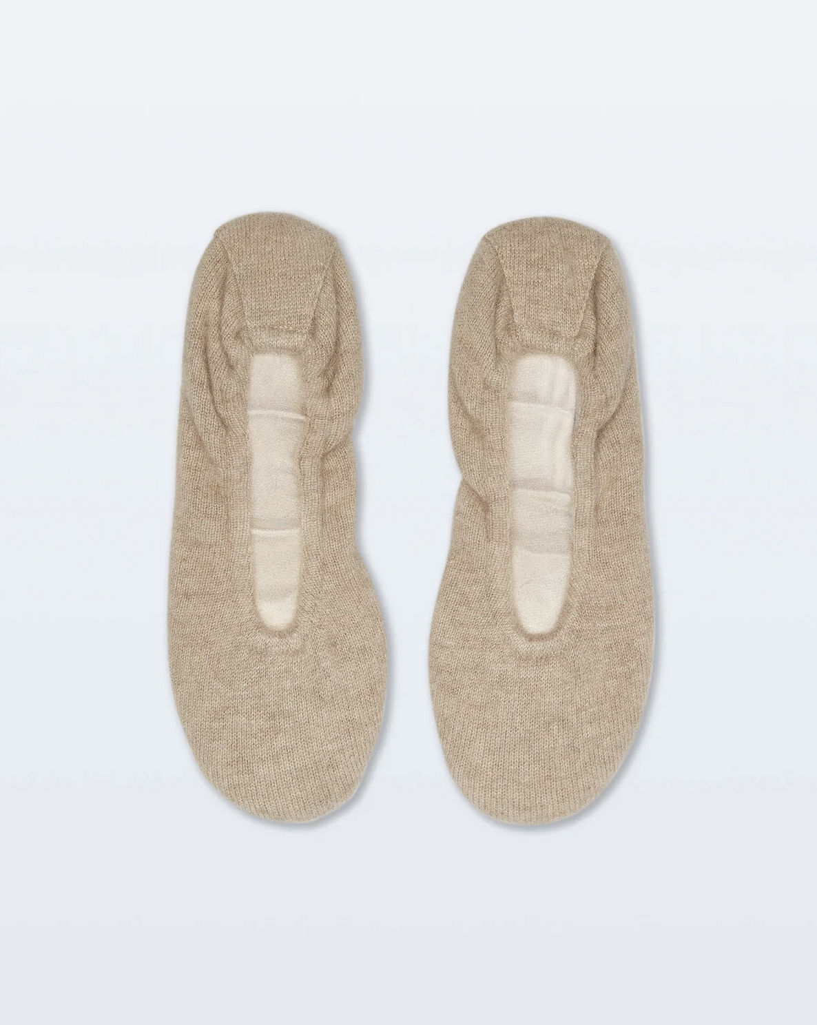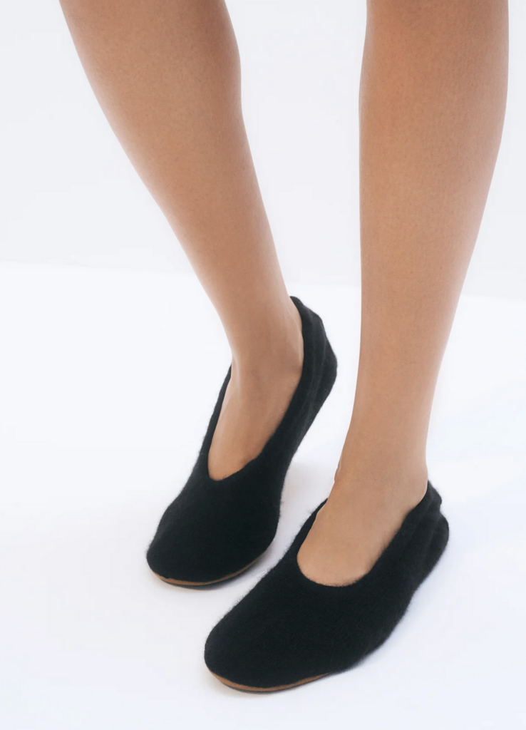 A luxury accessory for at-home lounging. Crafted in pure cashmere with cushioned soles and an elasticized trim, these ballet-inspired slippers envelop the feet in softness.