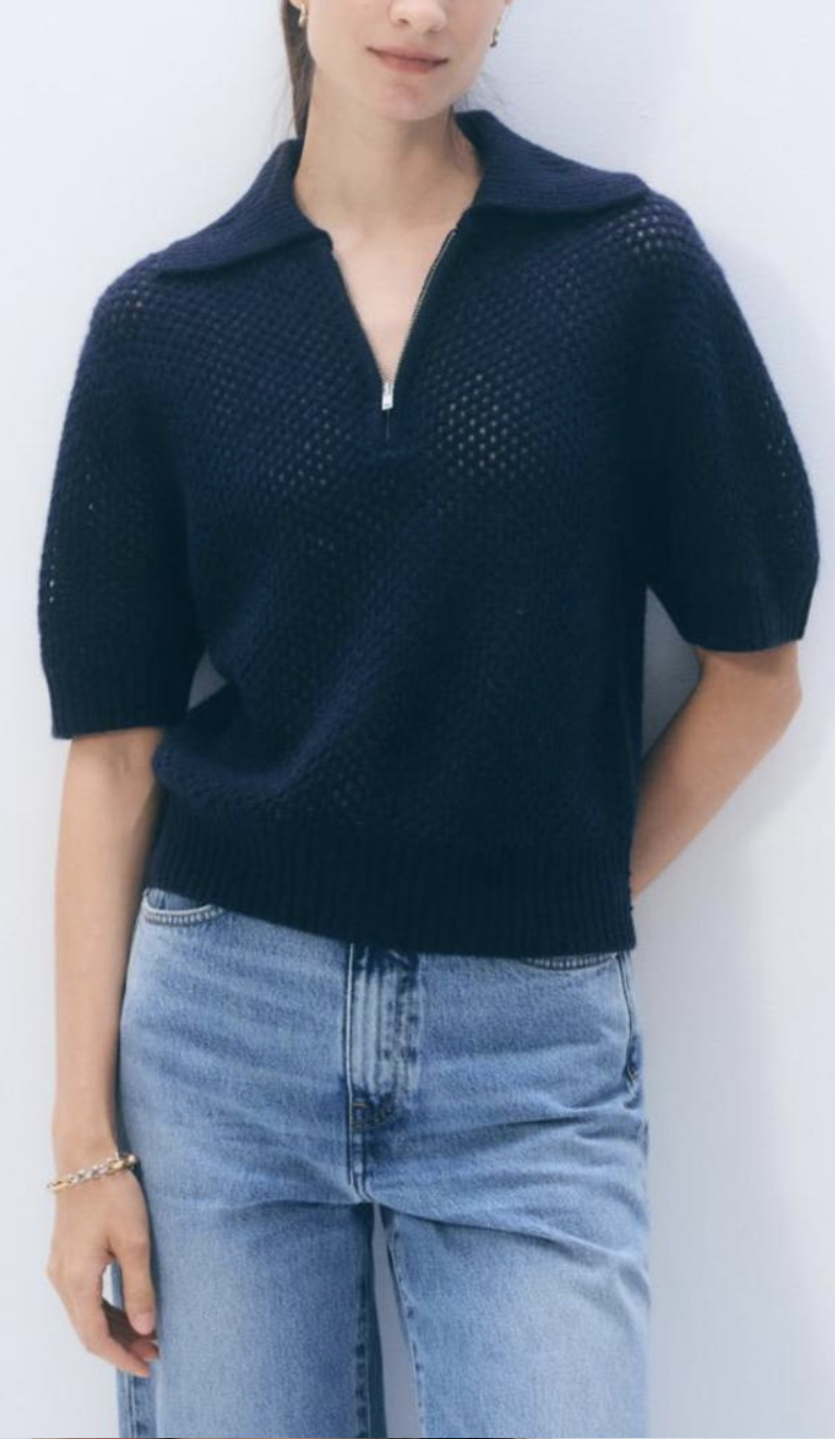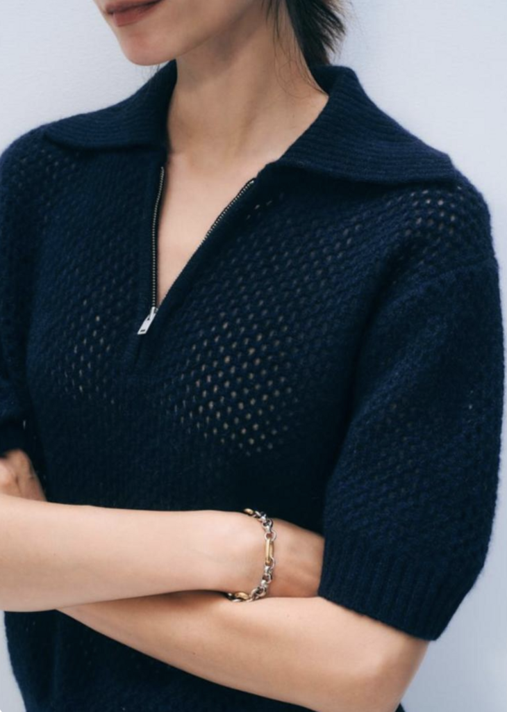 Cashmere knit mesh polo by White + Warren.