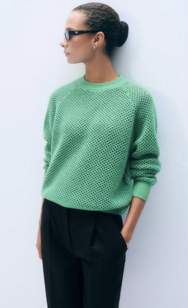 The most breathable sweatshirt. Crafted in 100% cashmere with an airy mesh knit, this crewneck offers an effortless drape, raglan shoulders, and a relaxed silhouette for a look that is perfectly understated, yet refined.
