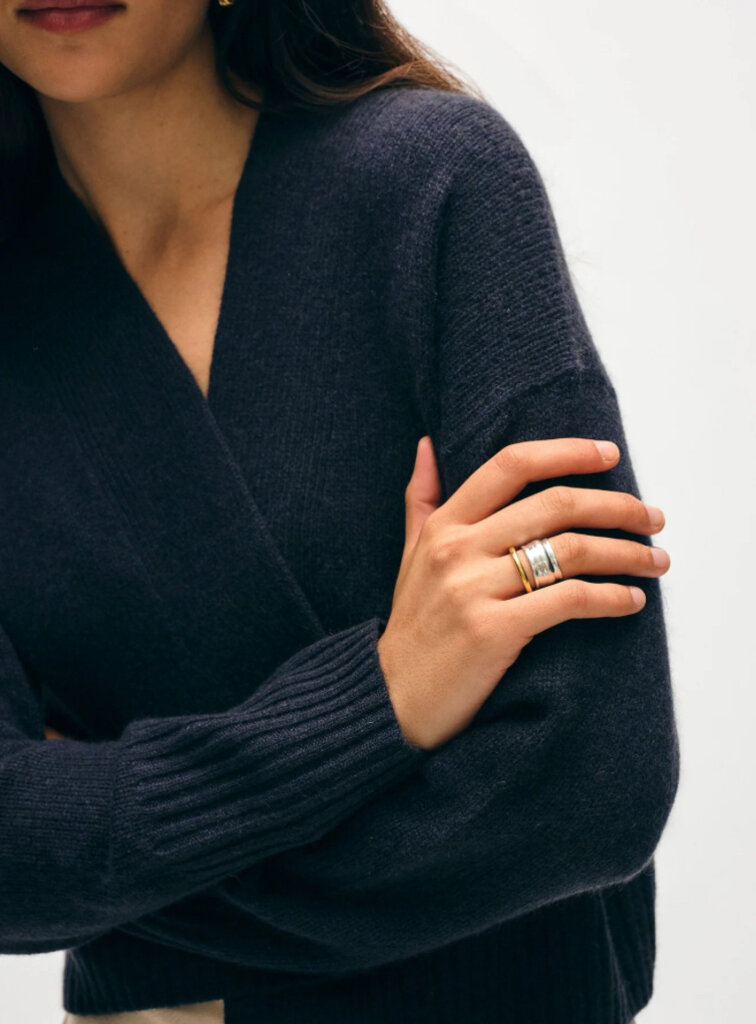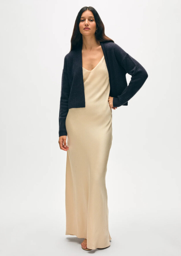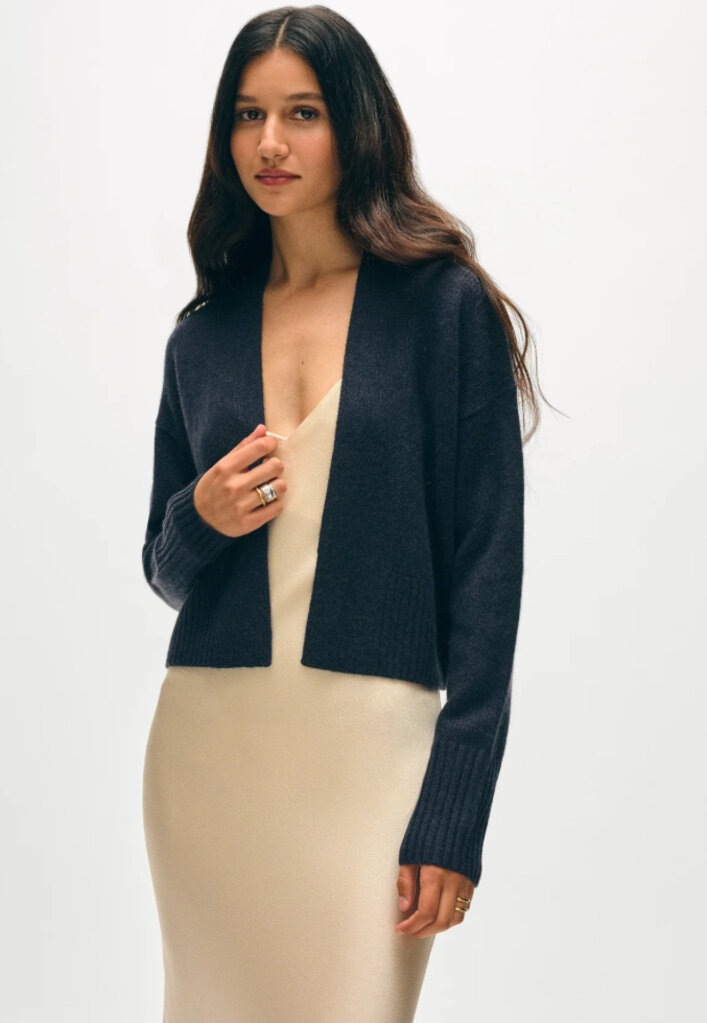 Meet your new favorite layer: the Cashmere Open-Front Cardigan. Crafted from featherweight two-ply cashmere, it delivers luxurious softness and warmth without bulk. A shrunken fit that hits at the mid-hip creates a sleek and flattering silhouette, while wider rib finishes at the cuffs and hem add a refined, textured touch. Versatile and chic, the open-front design ensures effortless styling over tees, dresses, or blouses.