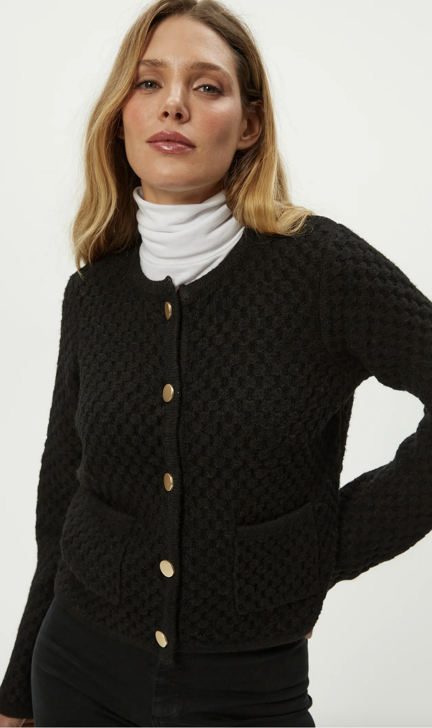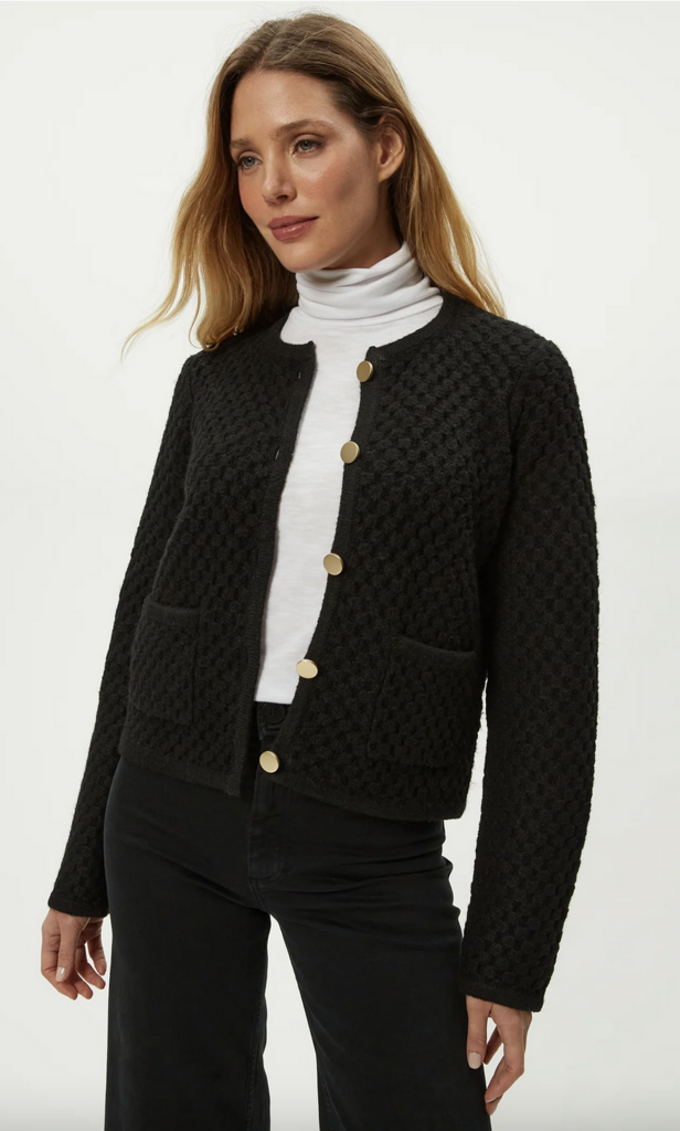 Cera offers a fresh take on the ladylike cardigan. This structured style features a round neckline, front buttons and patch pockets. What makes it special is its rich, honeycomb texture and classic boxy fit. Ideal for dressing or with denim, this feminine cardigan always has a place in your rotation.