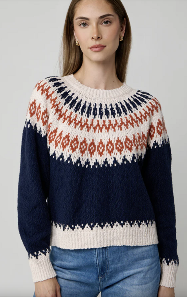 Chunky Fair Isle crew neck sweater by Autumn Cashmere