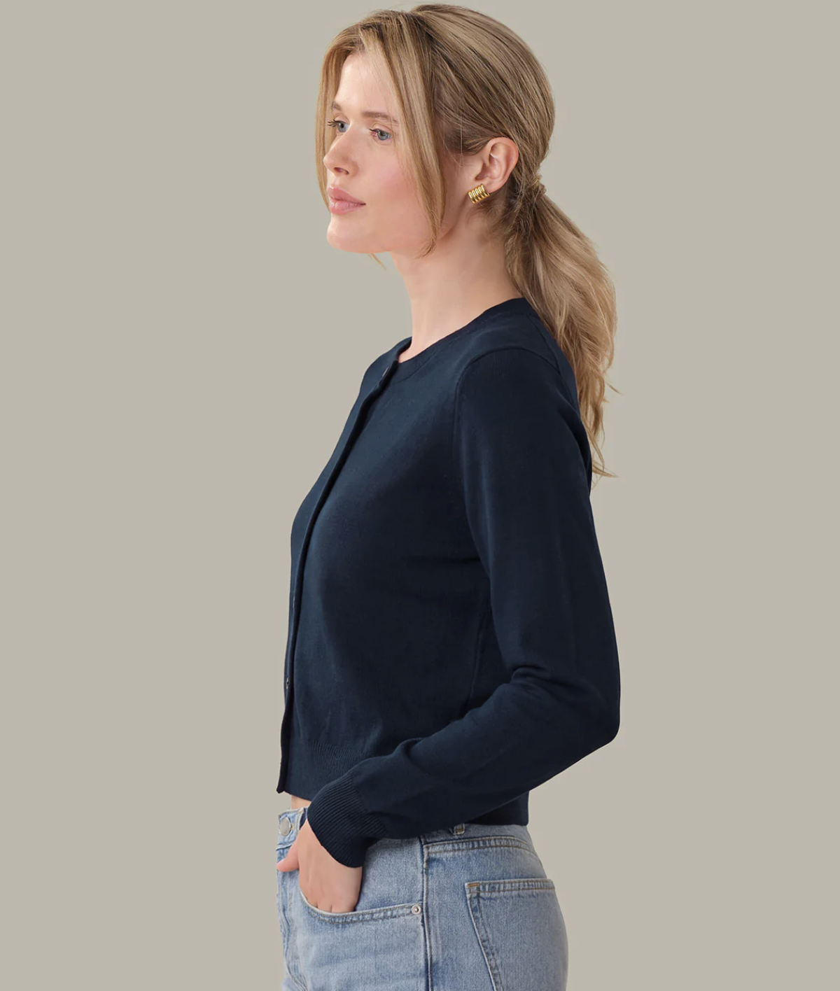 Not your average cardigan. This button-front cardigan works just as well styled on its own as it does layered over your everyday looks.
