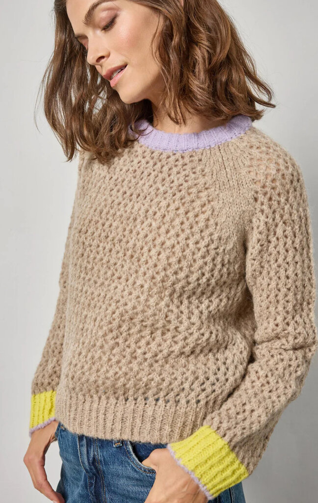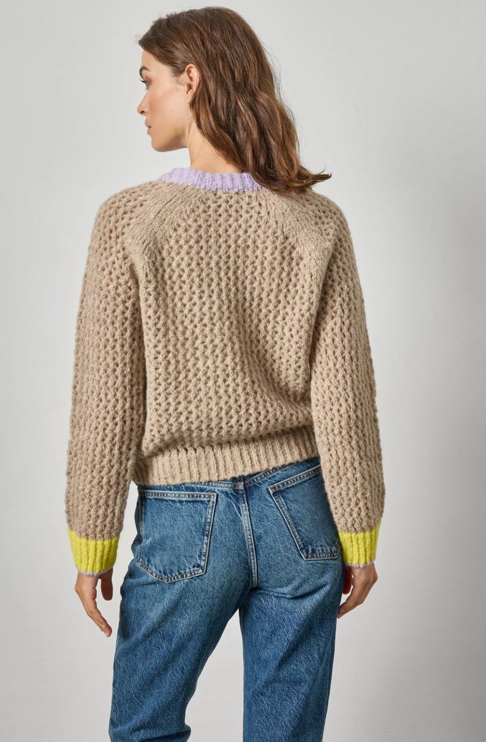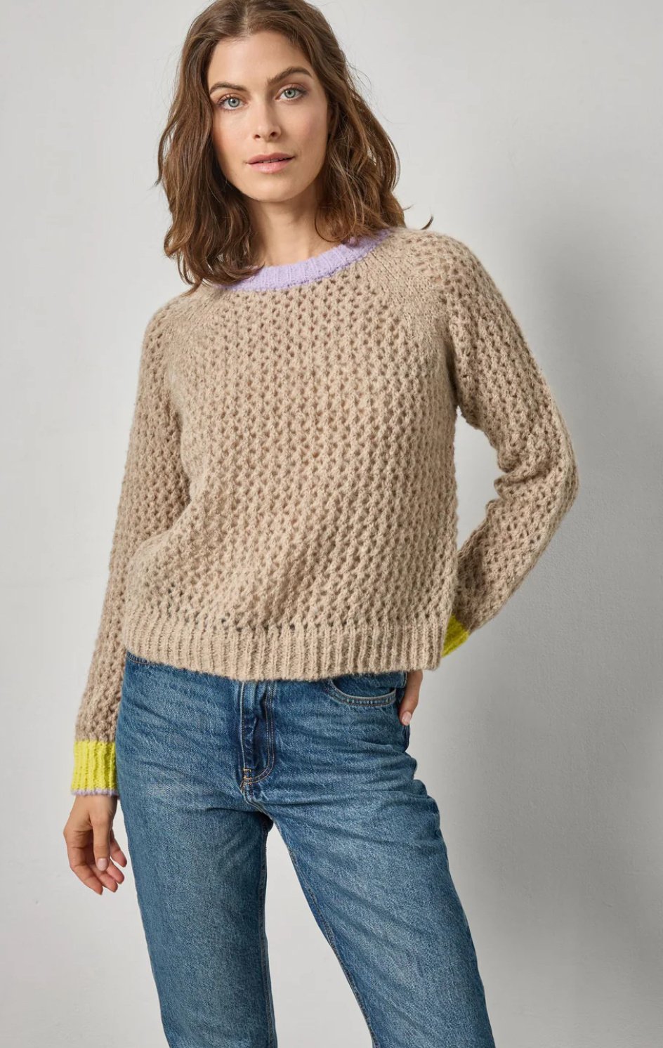 The Contrast Trim Crewneck Sweater is a beautifully designed style from our limited-edition collection, thoughtfully knit in a Fair Trade-certified factory in Peru. Crafted in our Peruvian Alpaca Blend yarn, this style was chosen for its natural feel, sustainable qualities, and connection to Peru’s rich weaving traditions. The open stitch on the body adds texture and depth, while contrast color trims at the neckline and sleeve cuffs provide a novel finishing touch. Available in two unique color combinations, it layers effortlessly over a cami or a crisp button-down shirt for a timeless, polished look.