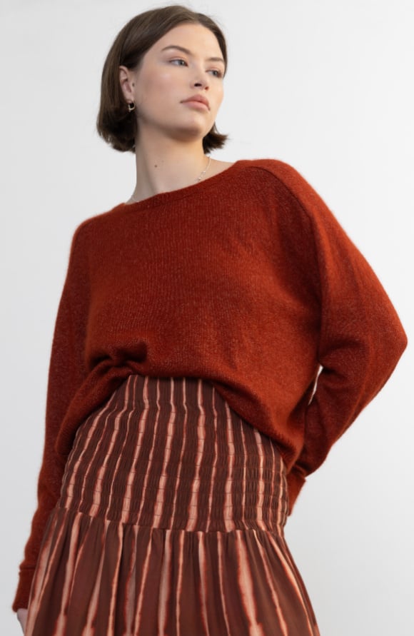 Featherlight and effortlessly luxe, this pullover is crafted from a dreamy blend of cashmere and silk. Rolled edges add a touch of undone charm, making it perfect for pairing with everything from floaty skirts to lived-in denim. It’s the sweater that makes you feel instantly pulled together, even when you’re keeping it casual.