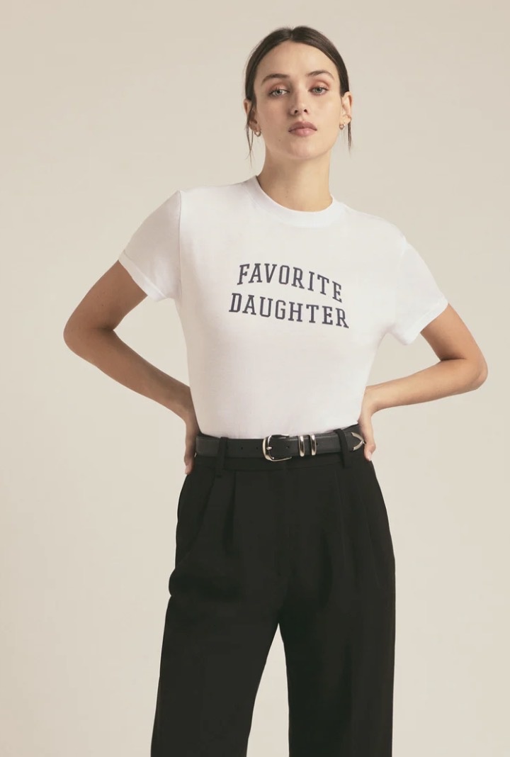 Classic cut tee, made with a cotton mix. By Favorite Daughter