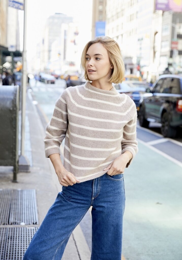 Easy Mock Sweater by Design history. This one comes in a 3/4 bell sleeve. Will make any outfit look effortless.