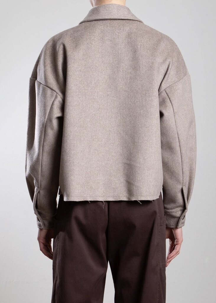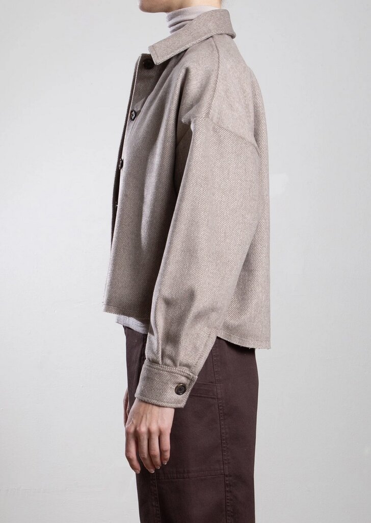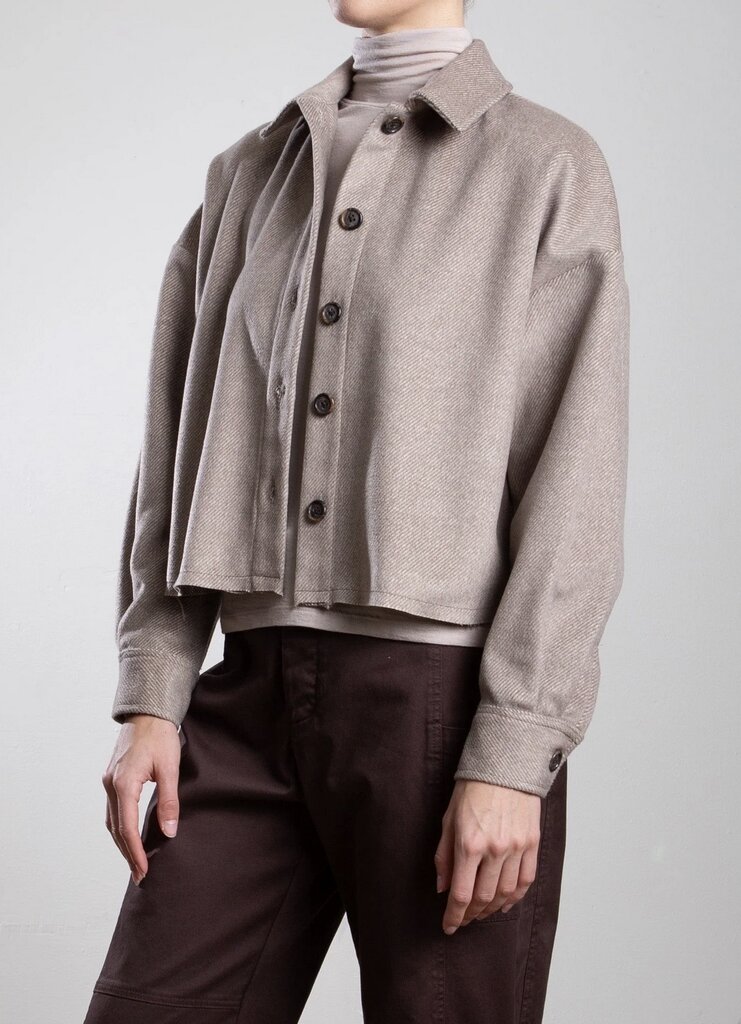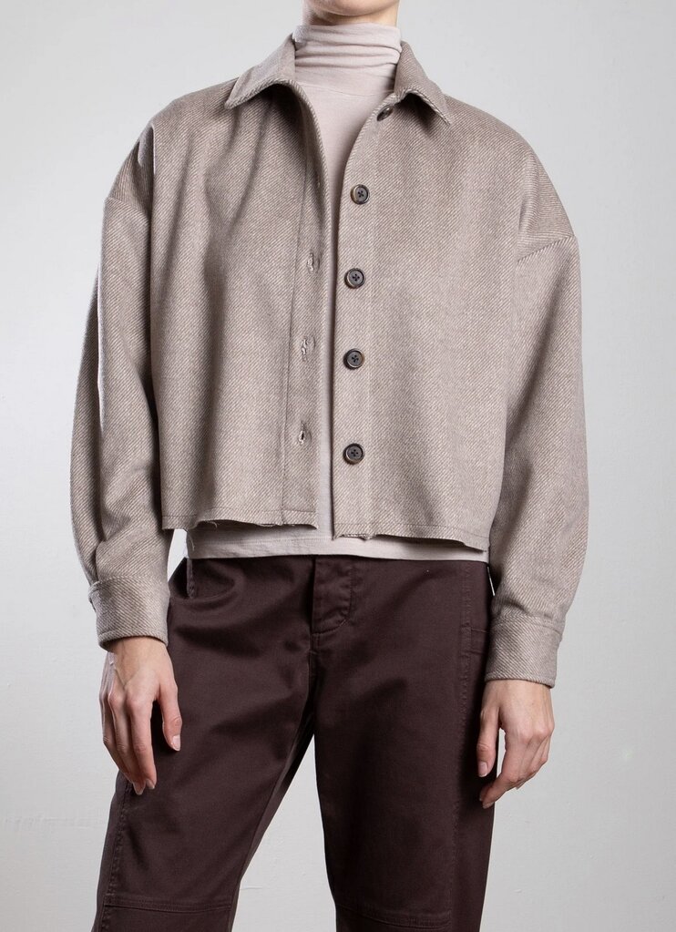 Relaxed-fit, cropped shirt in brushed twill from Italy. A raw edge hem gives it a subtly undone finish, while the relaxed fit makes it endlessly wearable. A best seller that's made for layering.