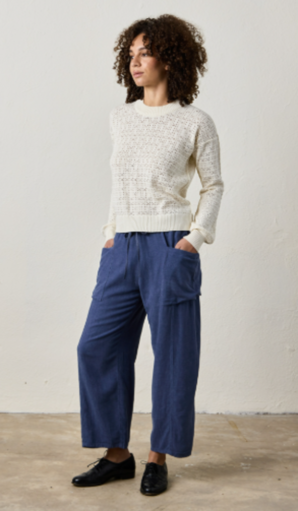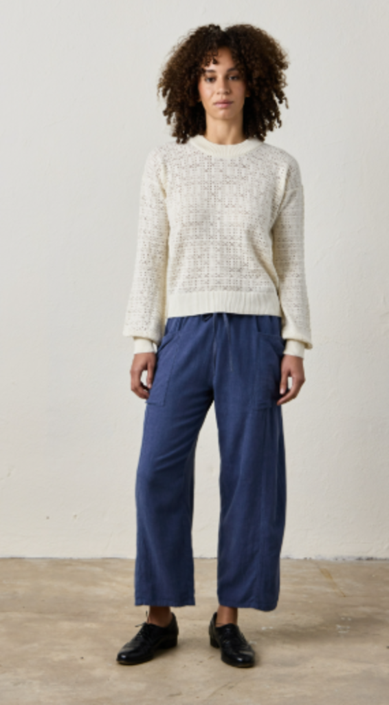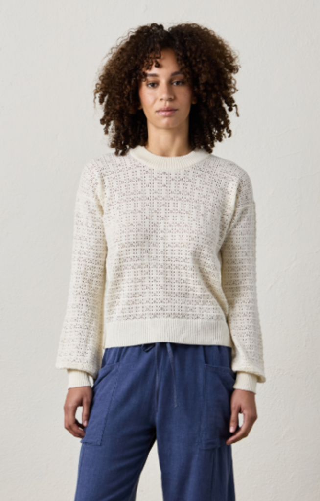 A fresh take on layering. The Estelle sweater in Chalk is crafted in a breathable viscose blend with a delicate pointelle knit, designed to be worn solo or over your favorite tank.