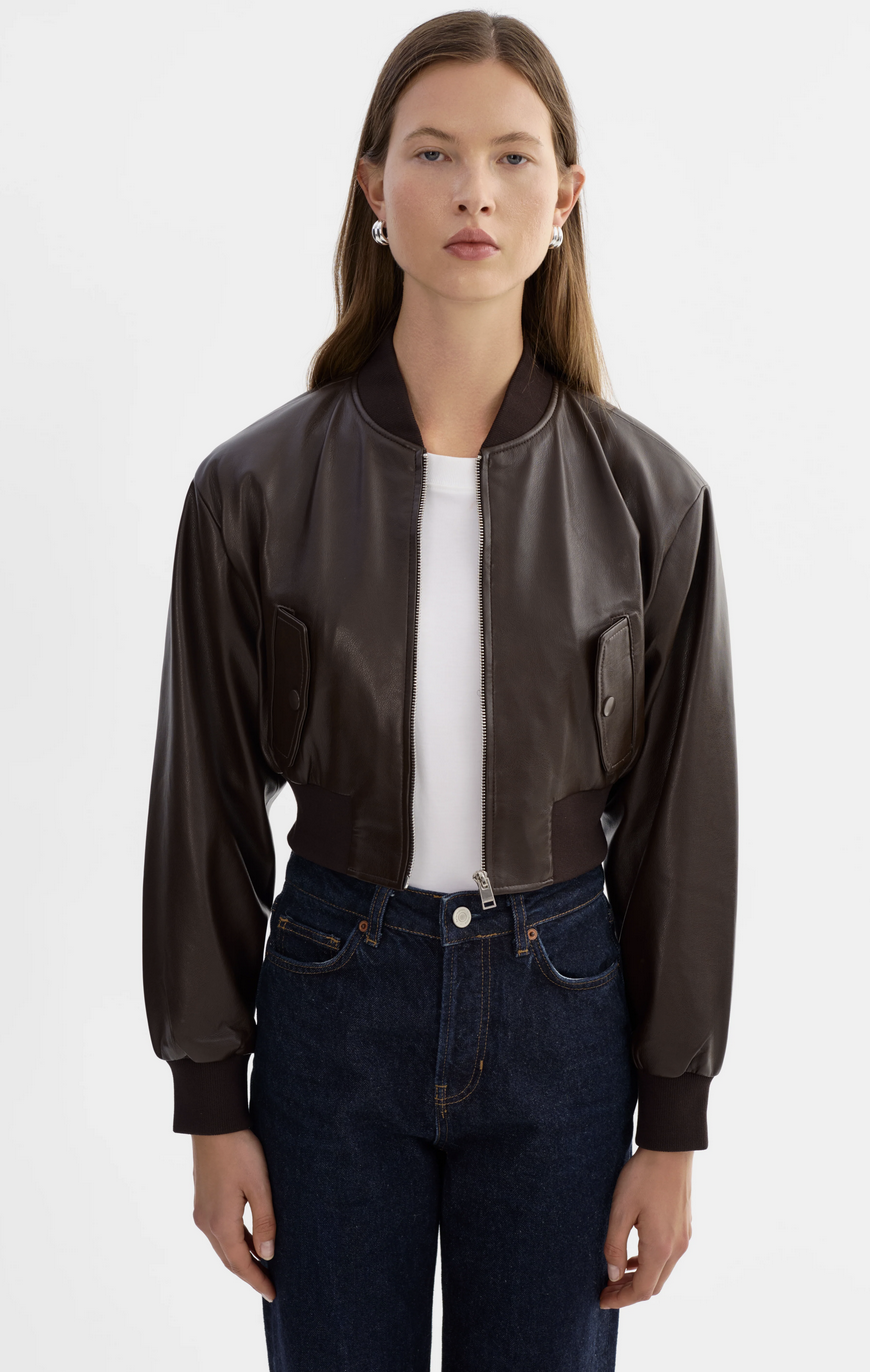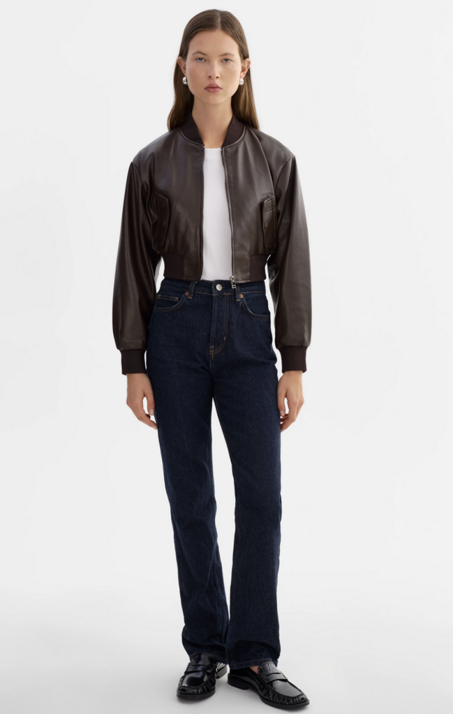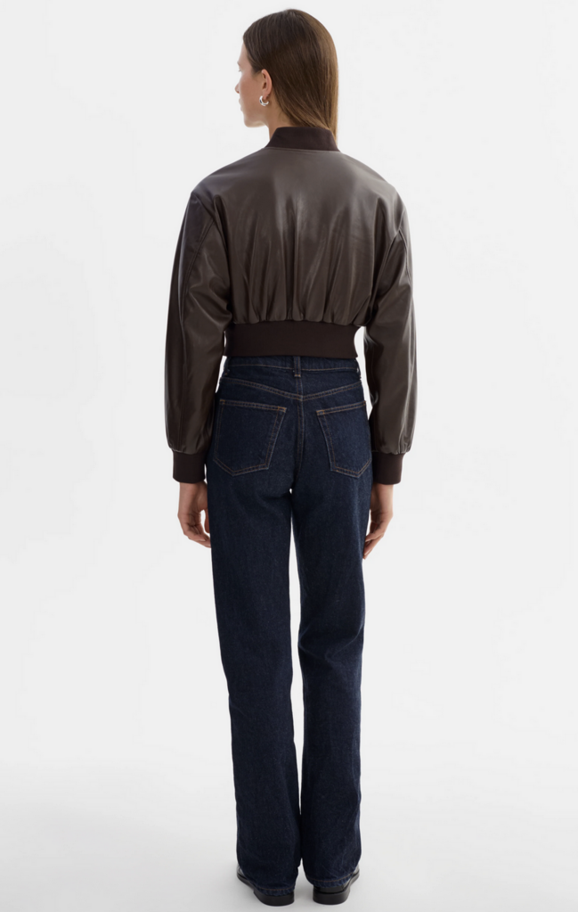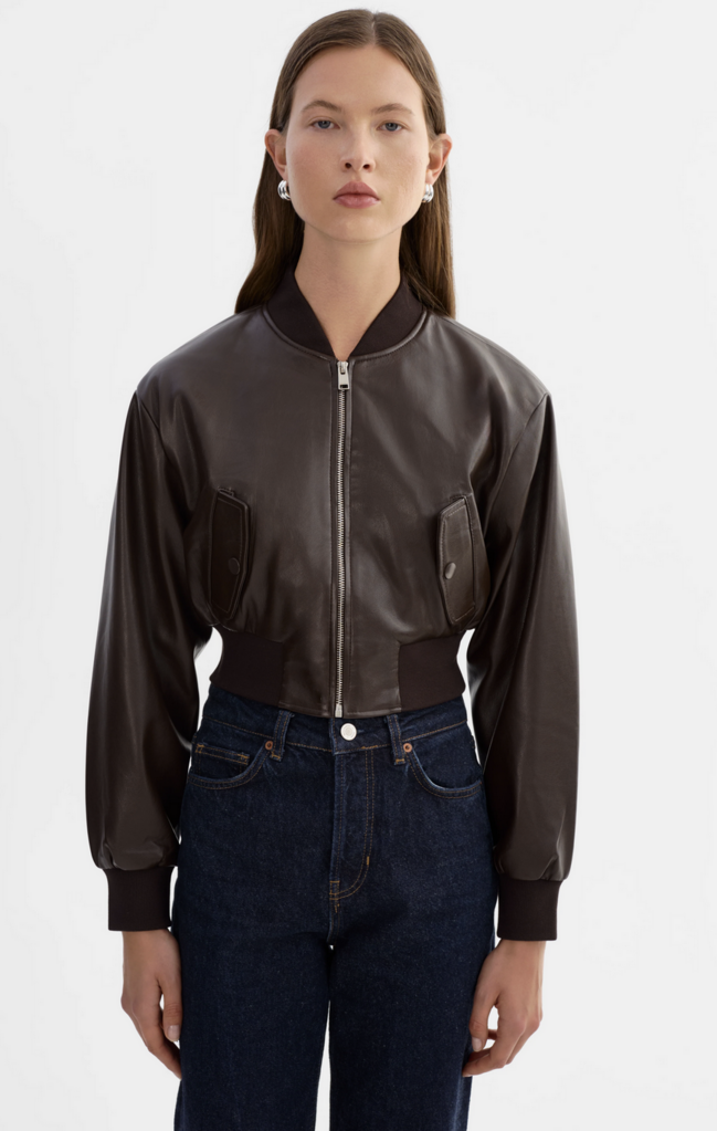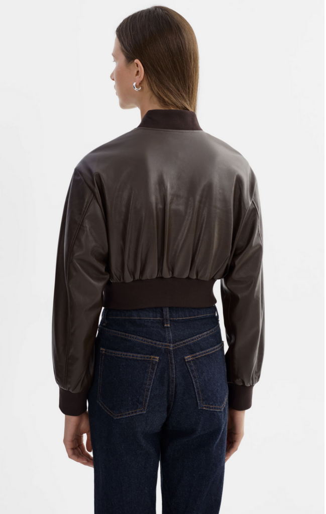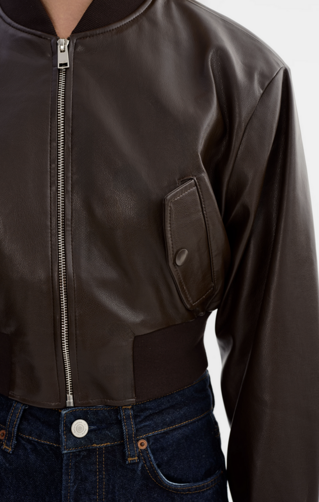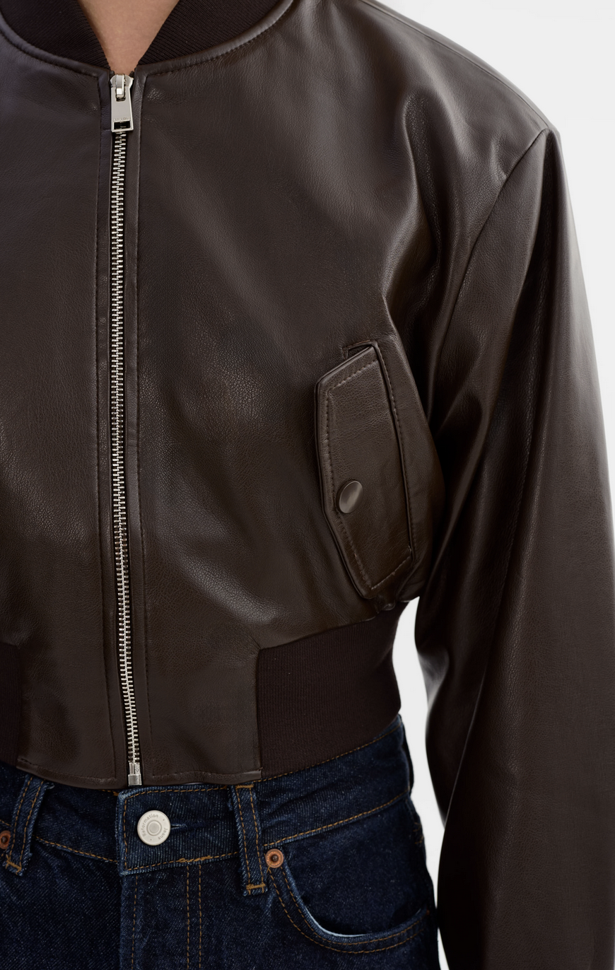 To say this faux leather crop jacket is a must-have would be an understatement. Crafted to perfection with every detail considered, its classic bomber shape is given a contemporary twist.