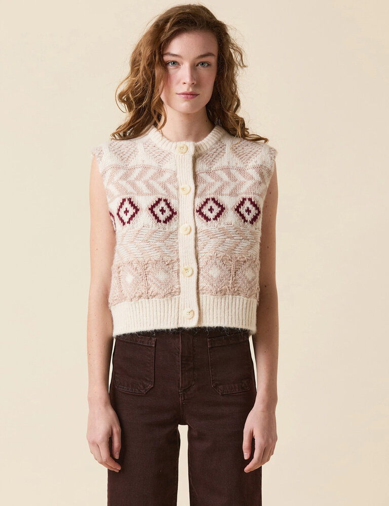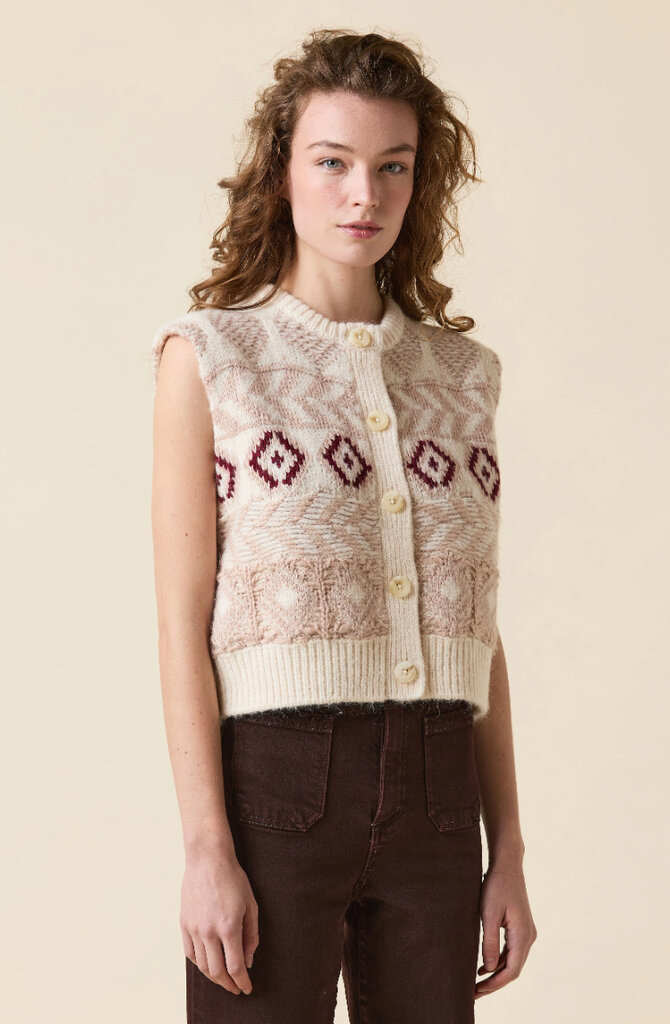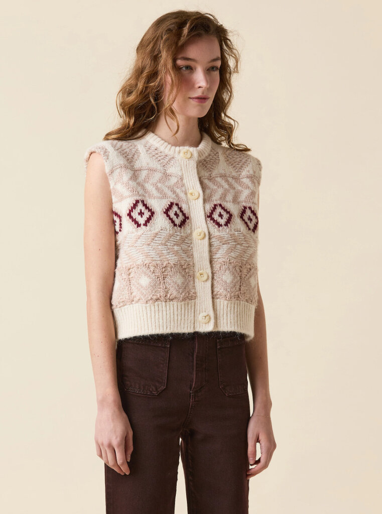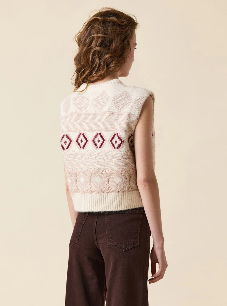 The Fair Isle vest is knitted to perfection with supersoft wool amd mohair blended yarns. The beautiful neautral colors make it endlessly versatile.