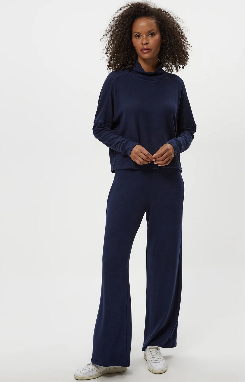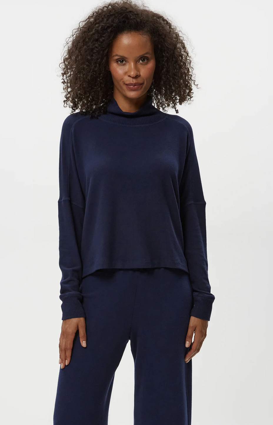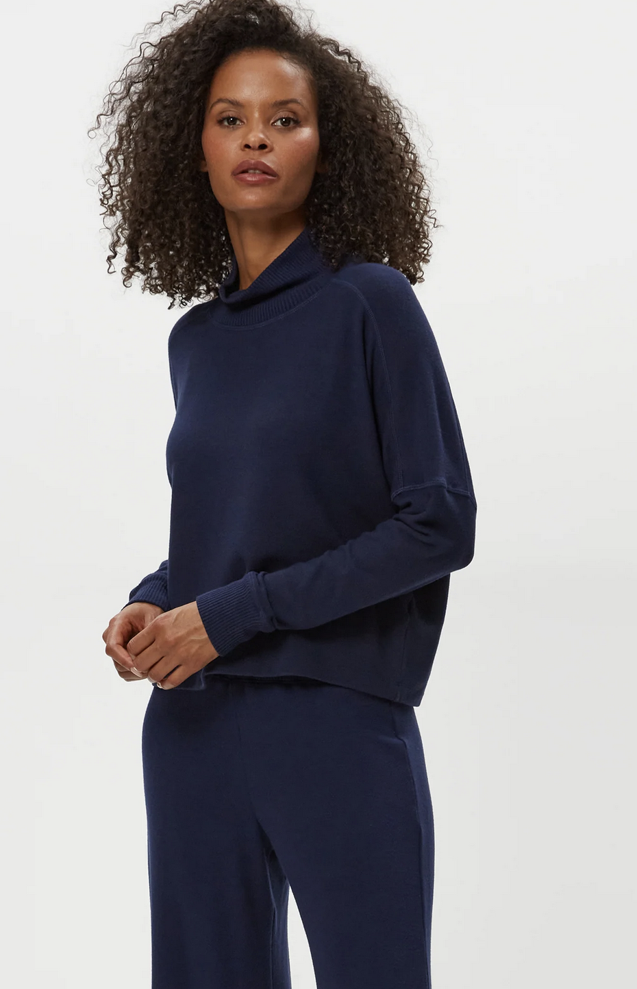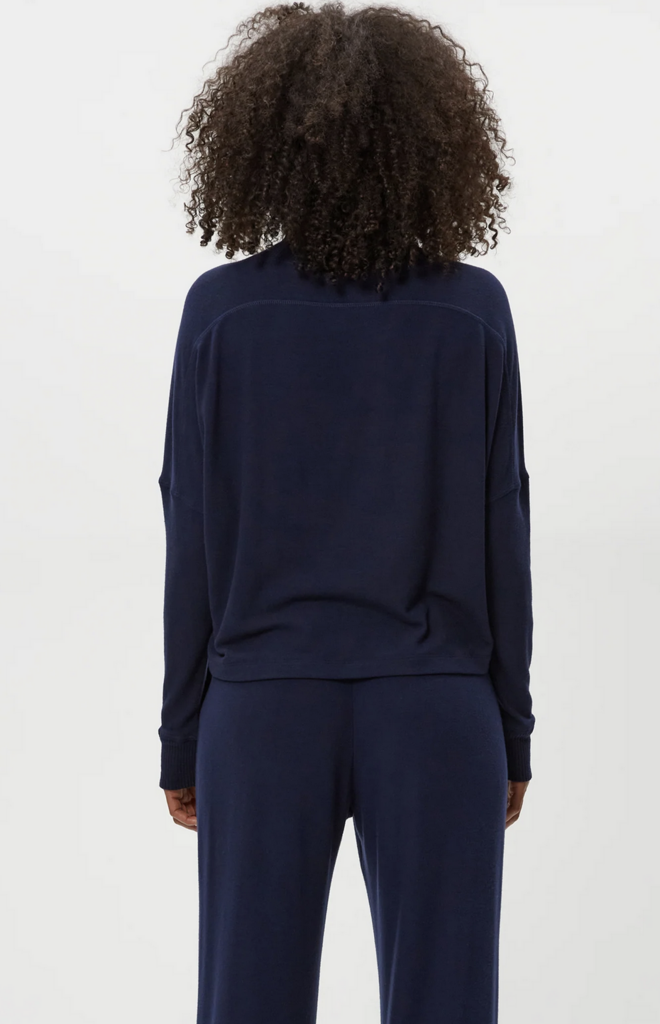 So comfortable you might try to get away with wearing her everyday. Frida has a mock neck with an easy fit and dropped shoulders.