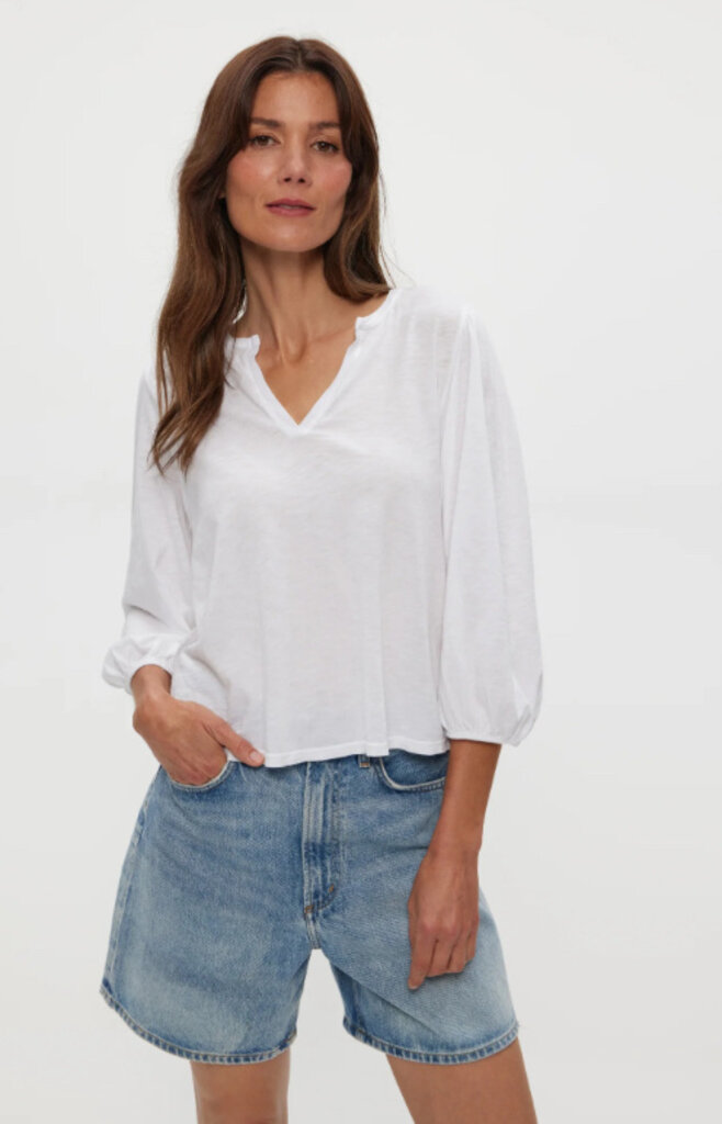 This easy puff sleeve top in our super soft SUPIMA® Cotton Slub, features a notched collar, 3/4 peasant sleeve with elastic detail and a relaxed fit.