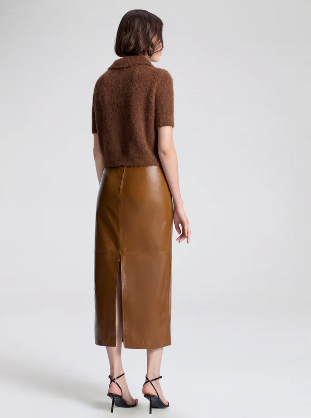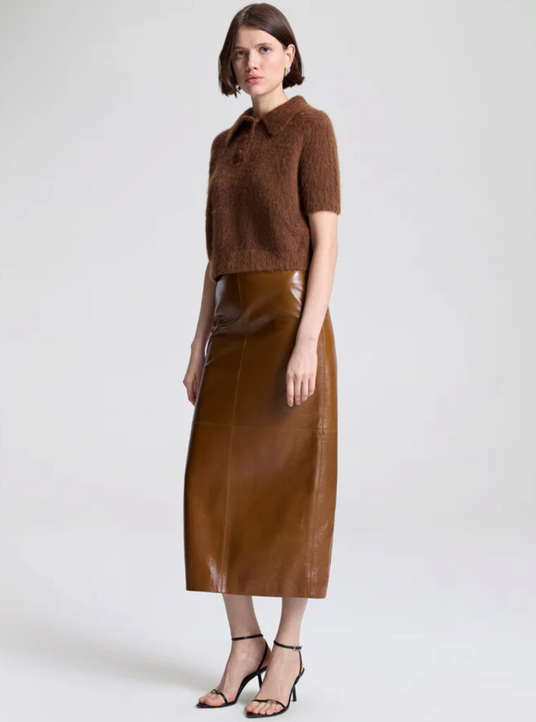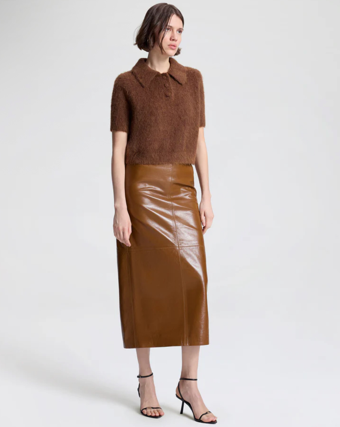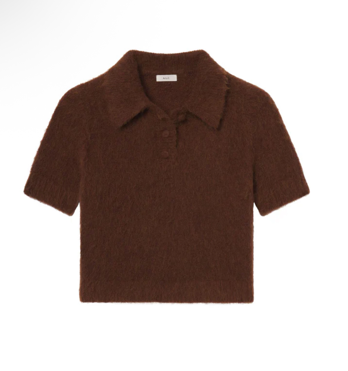 Brushed alpaca lends softness and lightness to this collared knit, detailed with matching buttons, mid-length sleeves, and a cropped hem.