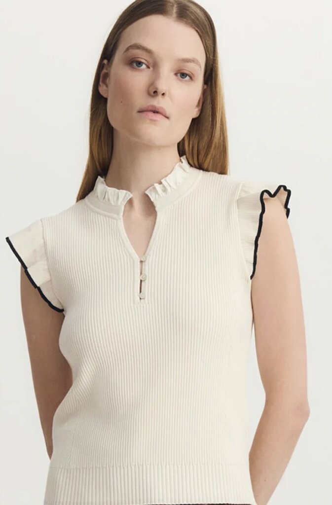 SLEEVELESS MIX MEDIA SWEATER TOP