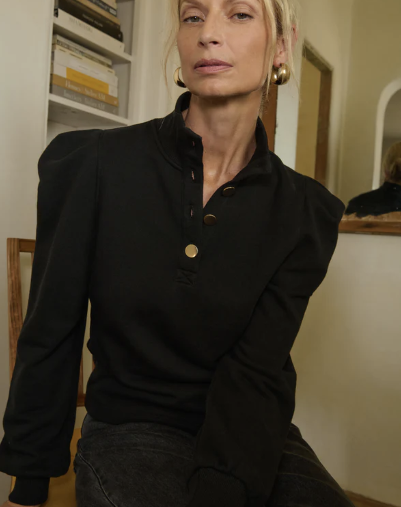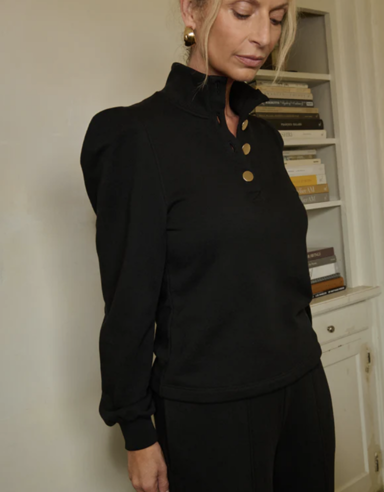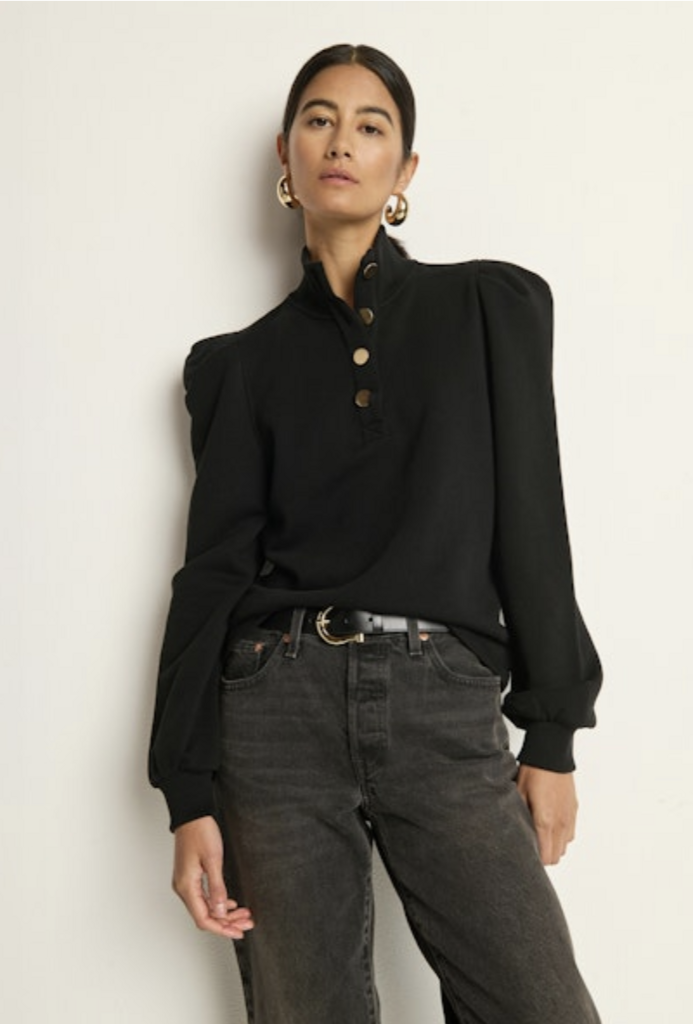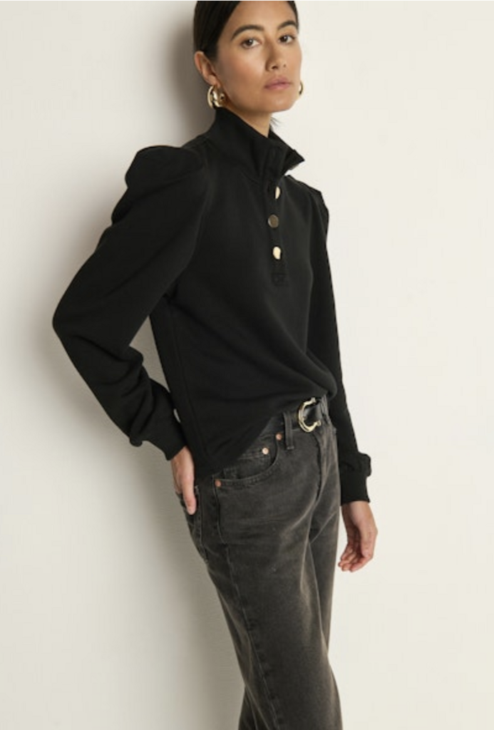 The Jessie Sweatshirt redefines casual with thoughtful tailoring—crafted from 100% cotton French terry in our classic signature fit. Featuring a button-up placket, pleated details, ribbed cuffs, and touches of gold hardware for a flawless finish.