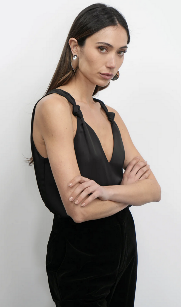 The standout detail is the stylish knot at the shoulder, which adds a subtle but eye-catching element.