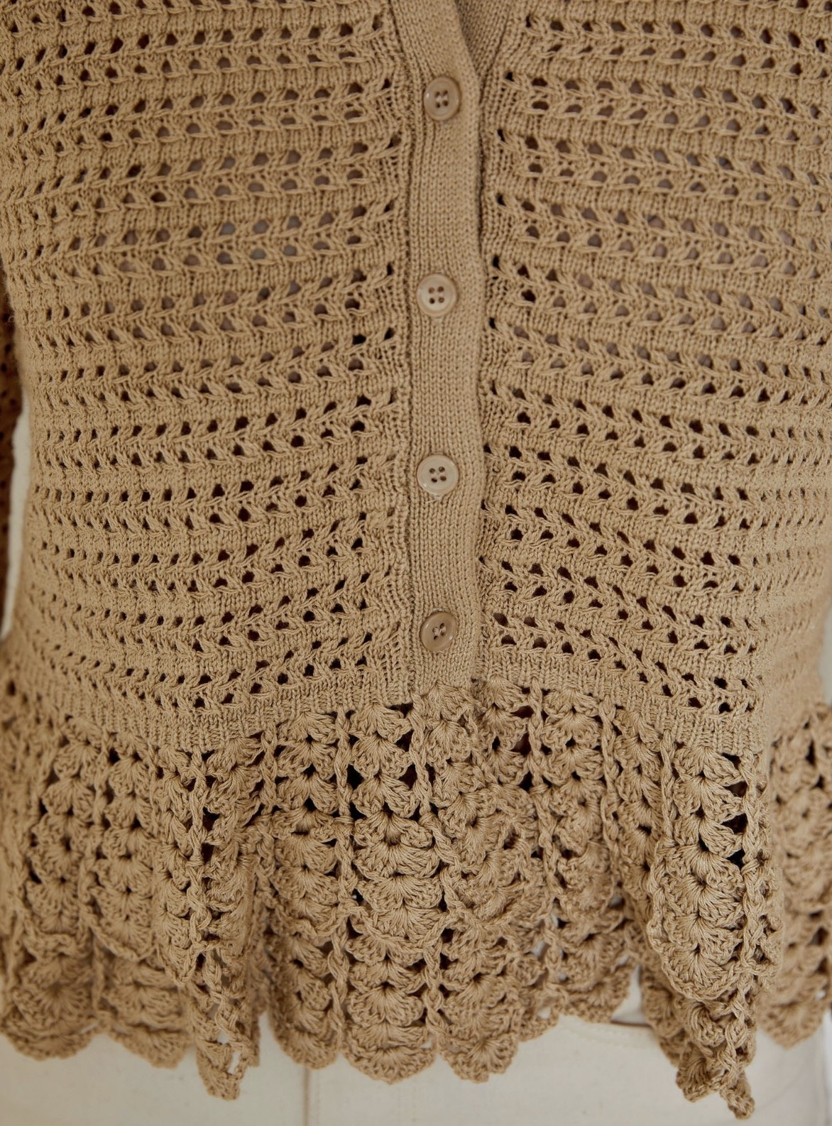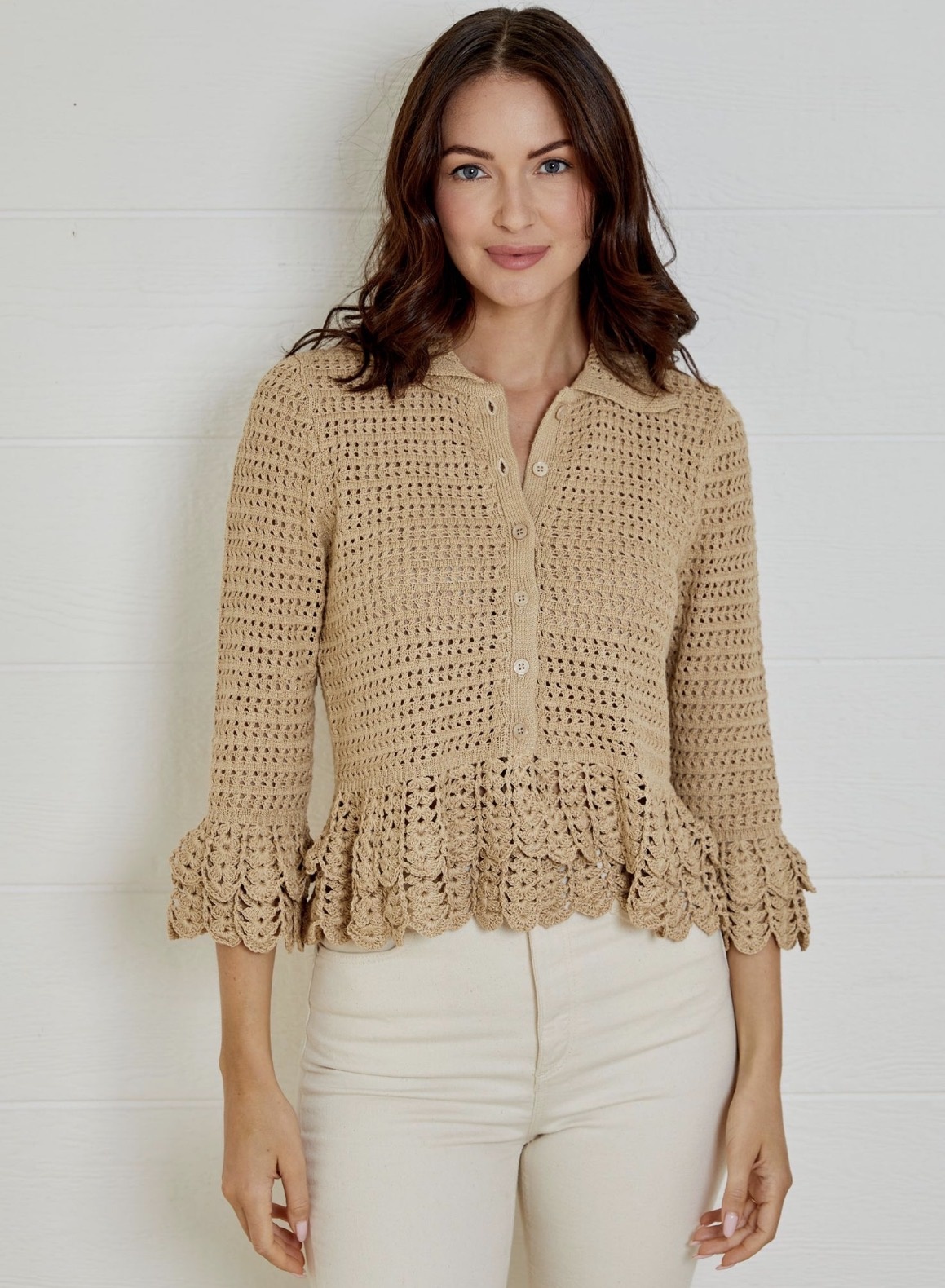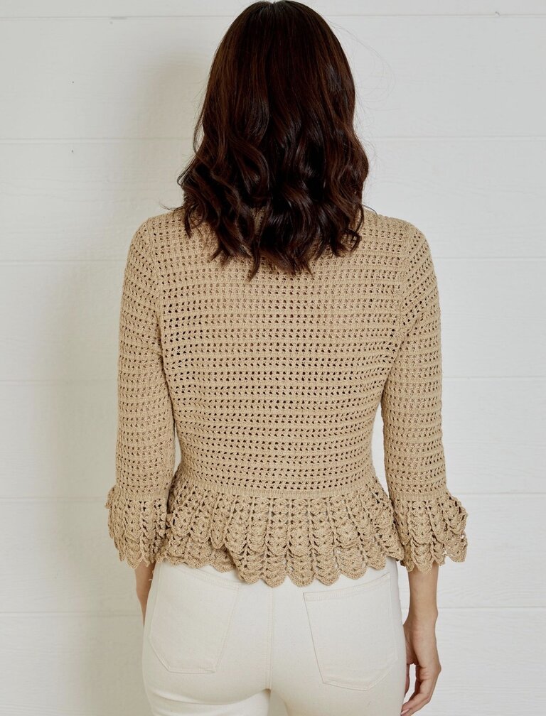 Kaylie Button Top by Dh New York. Crochet peplum hem top.