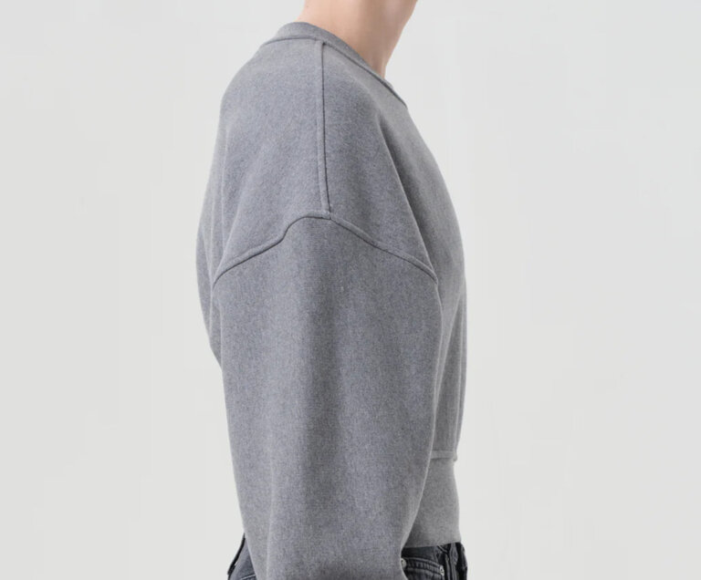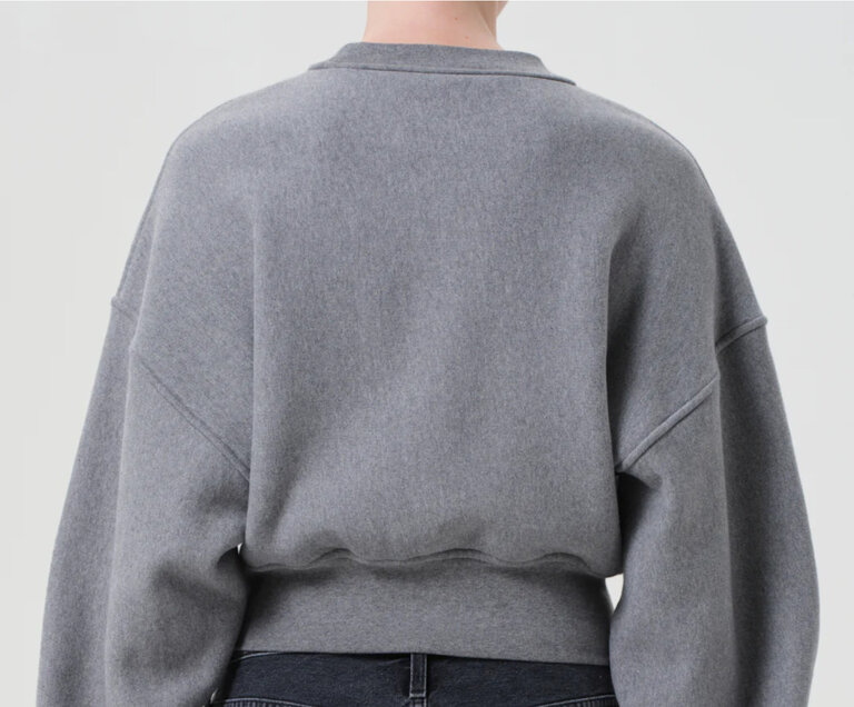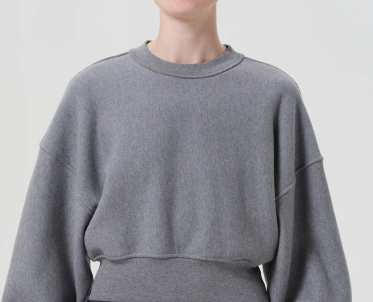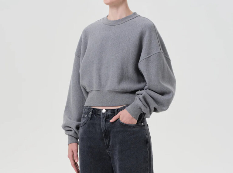 - Looks Like: Medium grey cropped crewneck sweatshirt with elastic at hem
