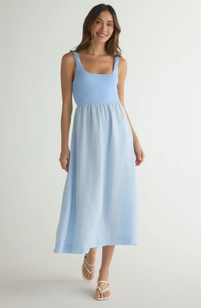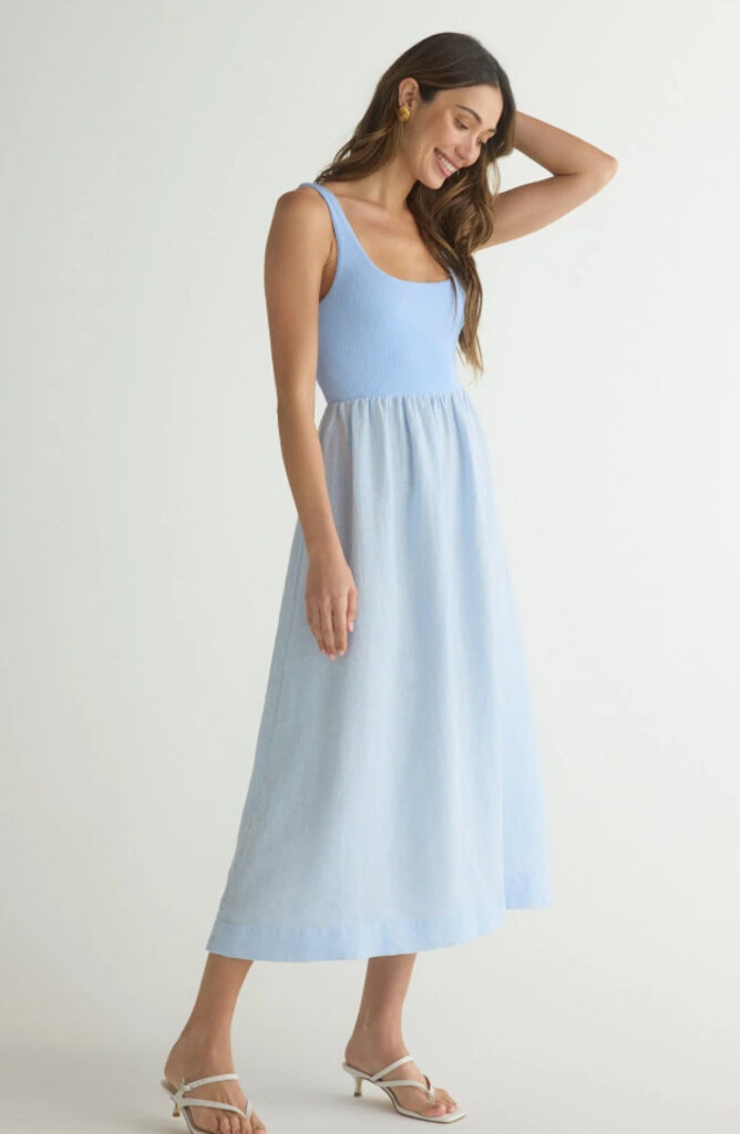 Fresh and feminine, the Sleeveless Knit Combo Dress offers effortless summer style and all-day comfort.