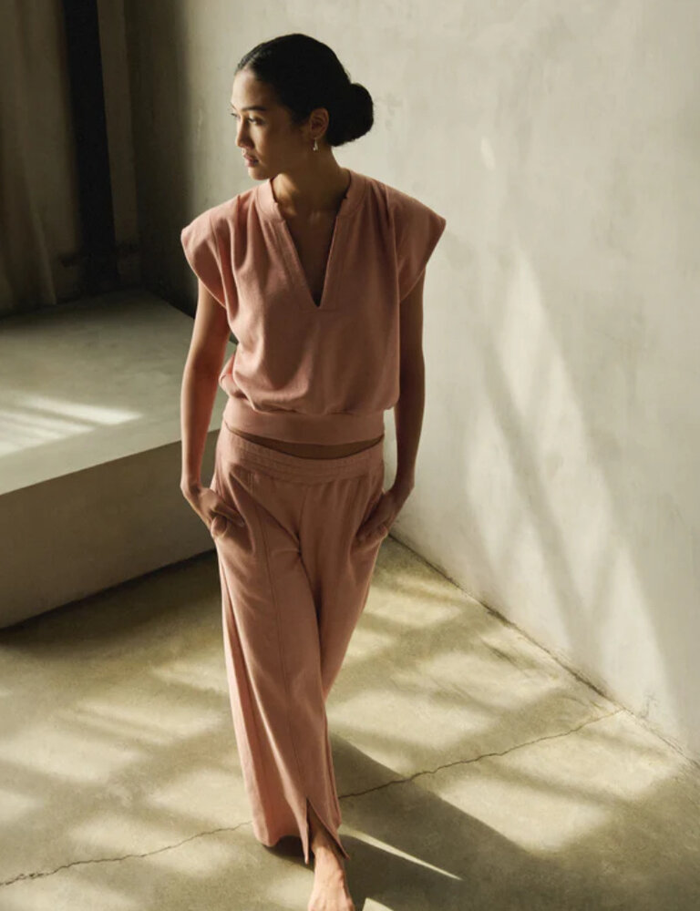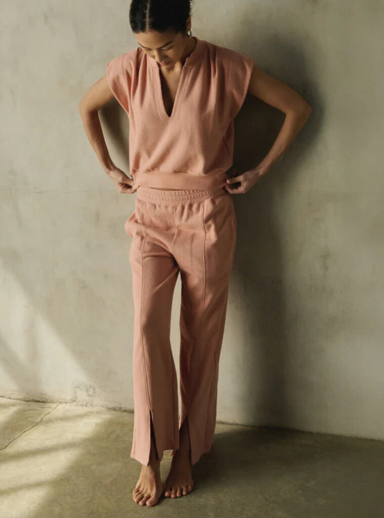 Proof that casual can look chic (all summer long). These chic sweatpants have an easy, elasticized waistband and seamed details with front slits on the hem. Feels effortless, looks ready for whatever the day brings you.