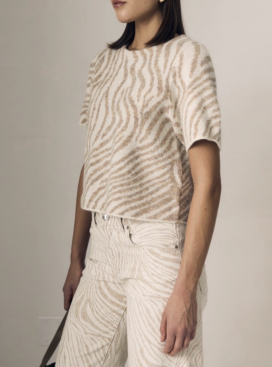 The Lulu Sweater in Zebra delivers a bold yet refined statement. Crafted in a soft, lightweight knit with a relaxed silhouette, this elevated animal print pairs effortlessly with denim or tailored trousers an easy standout for a contemporary wardrobe.