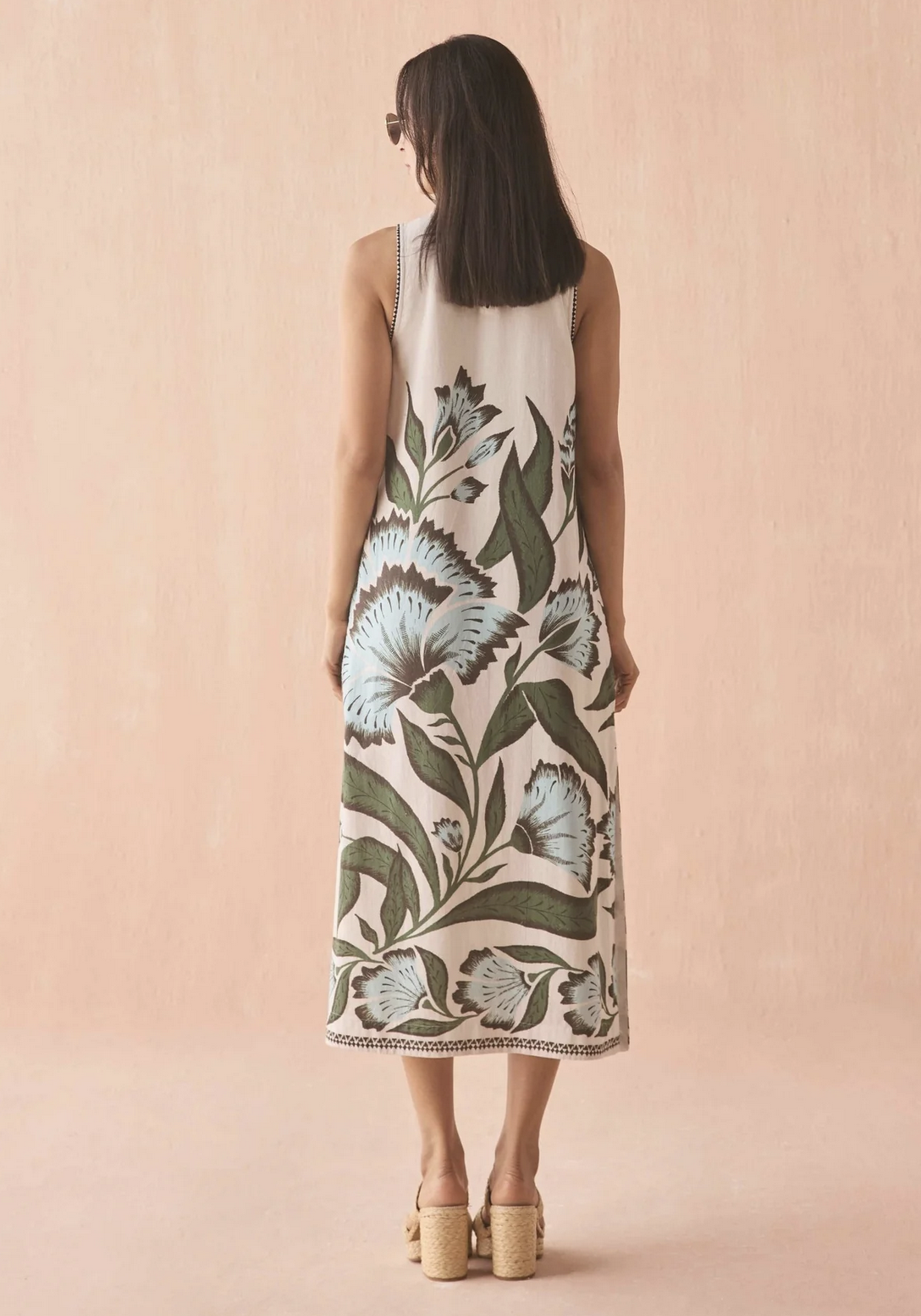 - A-line midi dress Keyhole with button + loop at back neck