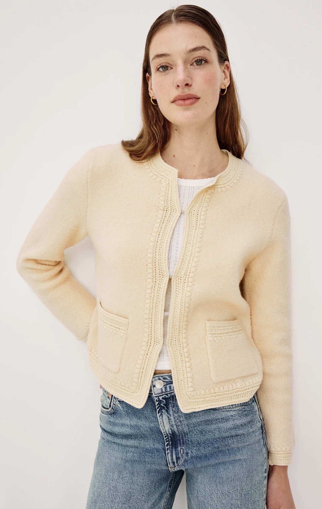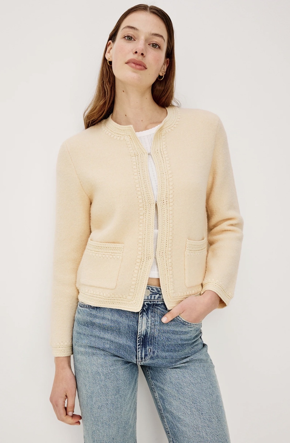 The Micala Jacket in Oat is crafted from a soft wool blend with a clean, tailored silhouette. A refined neutral layer designed for effortless everyday wear.
