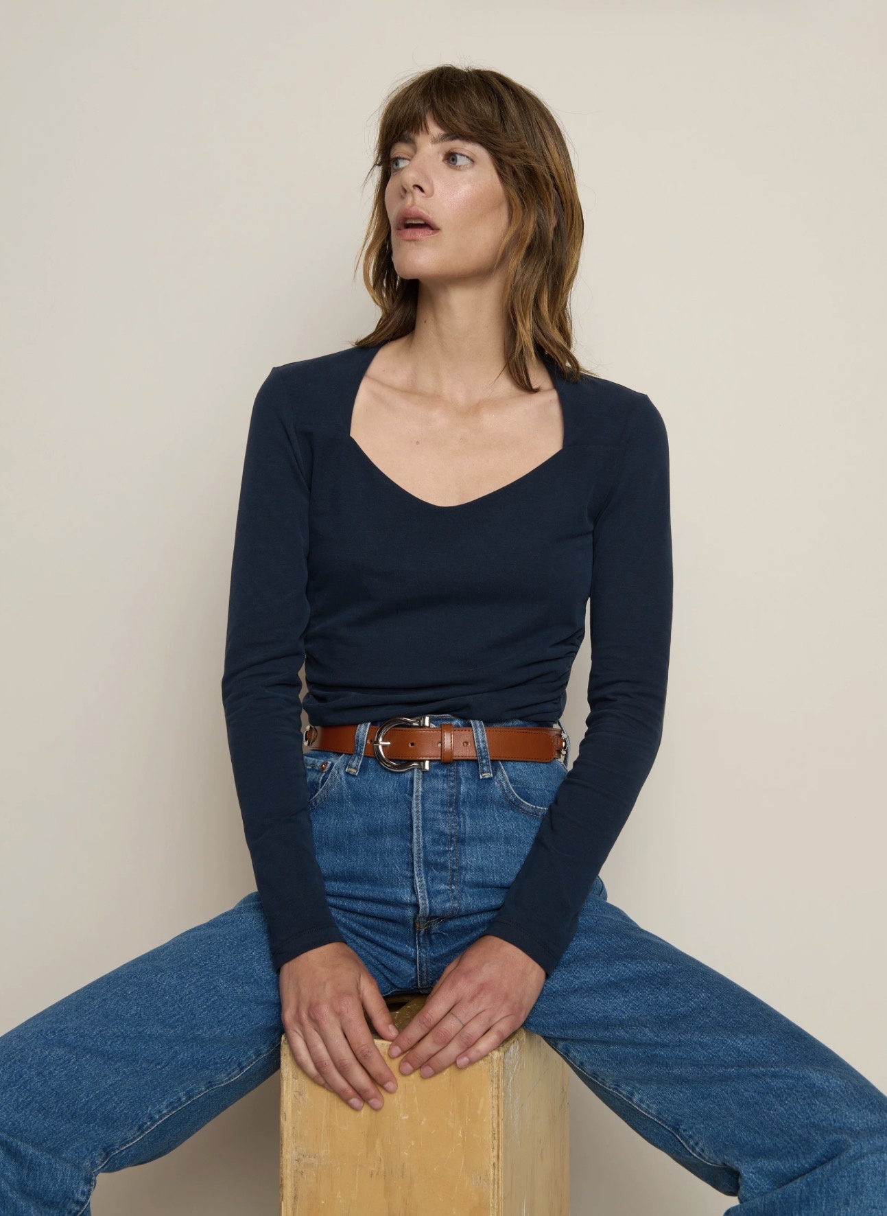 The Millie Tee is a fitted staple with just the right amount of stretch—made in pima pigment jersey for a close, comfortable feel. Shirring and a sweetheart neckline bring a feminine fit in all the right places.