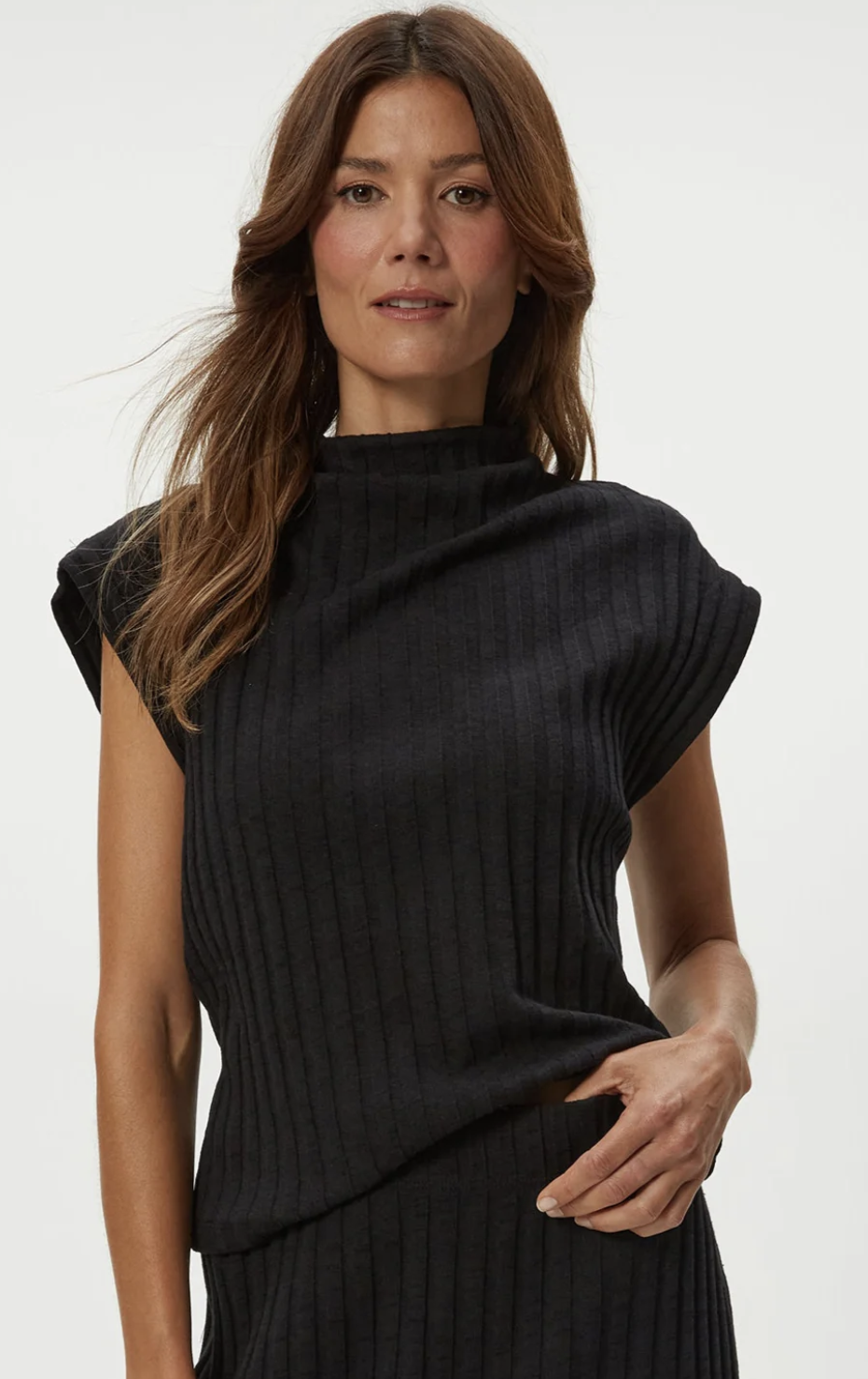 The perfect day to-night piece, this chic top is crafted with a soft power shoulder and mock neckline. Designed with a roomier fit, it's made from our soft London Rib fabric that washes well and keeps its shape throughout wear.