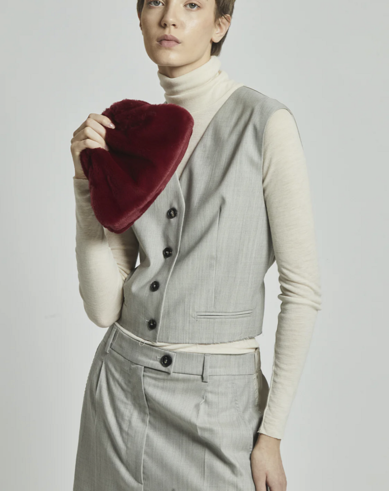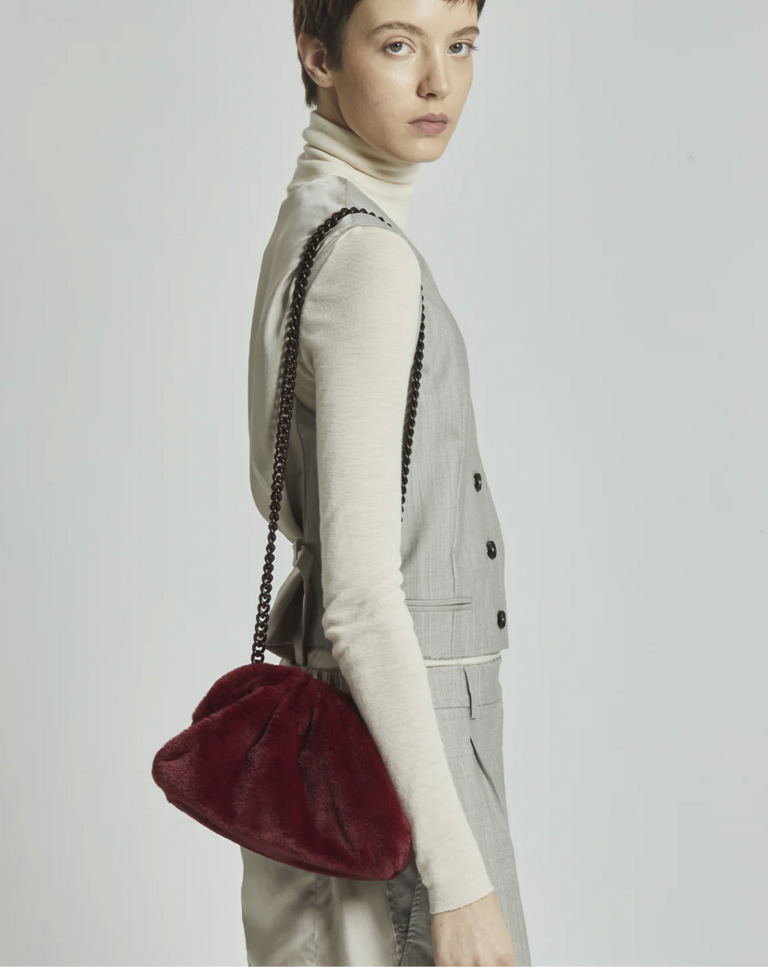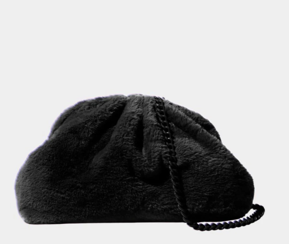 Small women's clutch bag in faux fur.