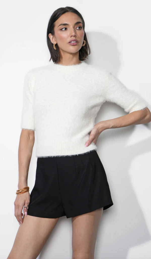 Create an accountODETTE FUZZY ELBOW SLEEVE KNIT TOP