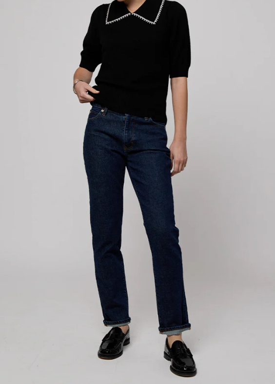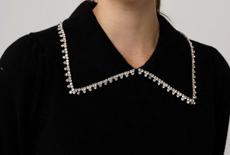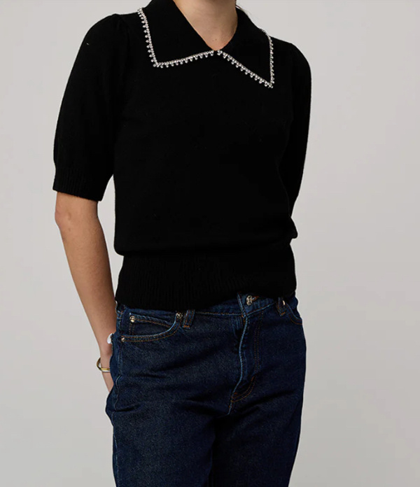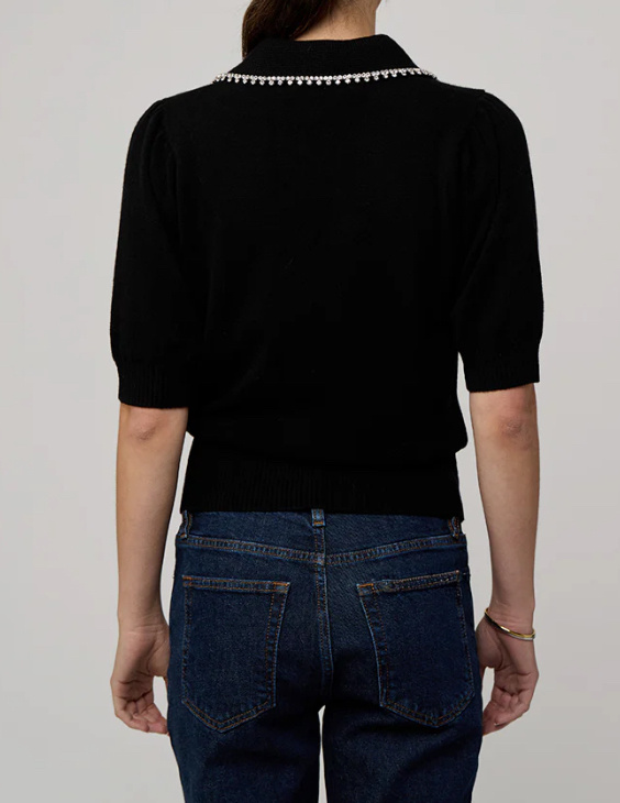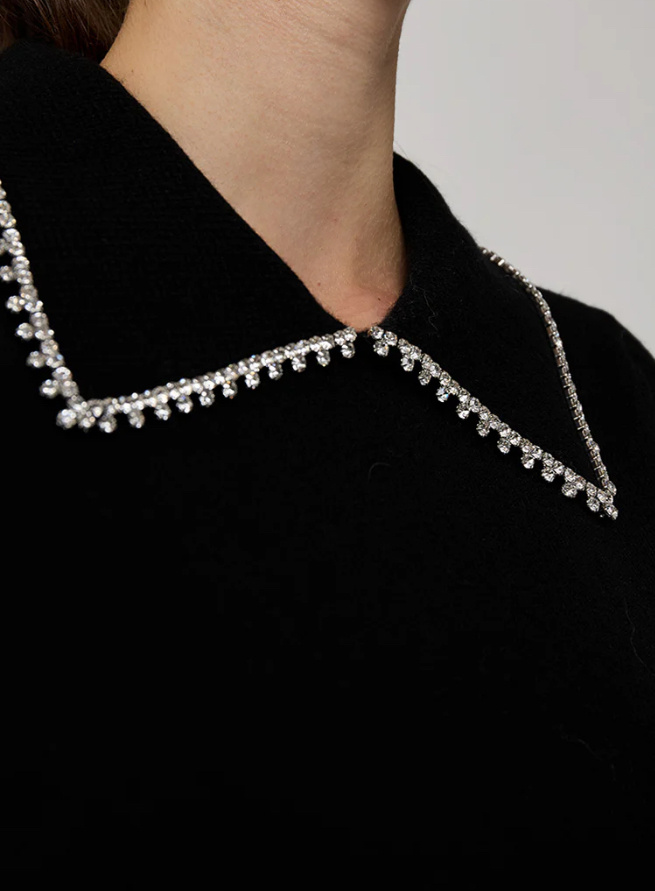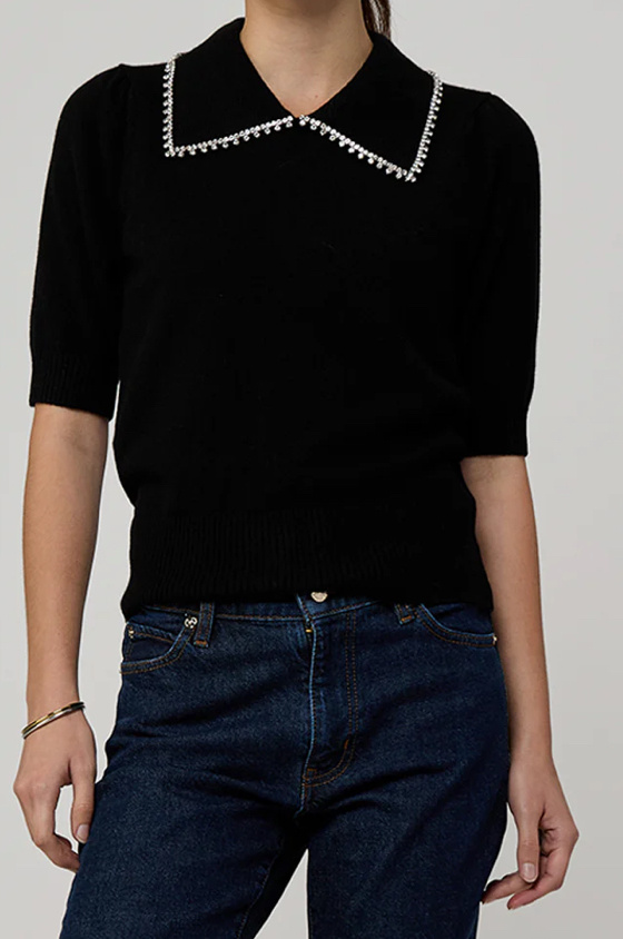 The ever dapper Peter Pan Collar sweater. In cashmere decorated with a rhinestone collar. Ageless staple you will have for years to come.