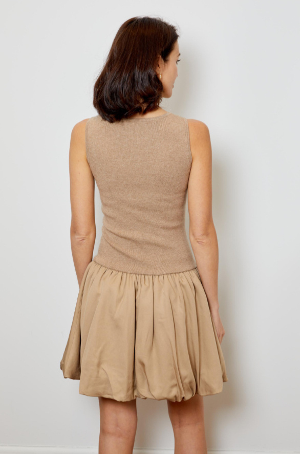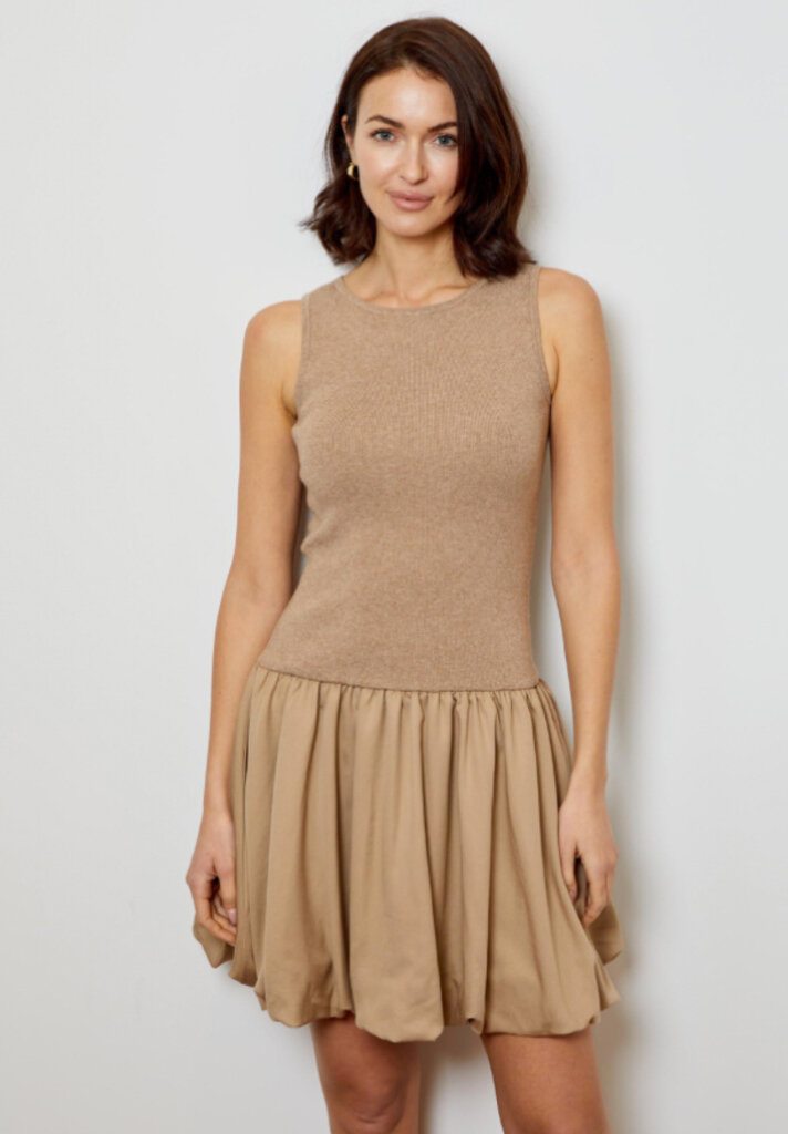 Dress with Drop-Waist Sweater Top and Attached Woven Skirt