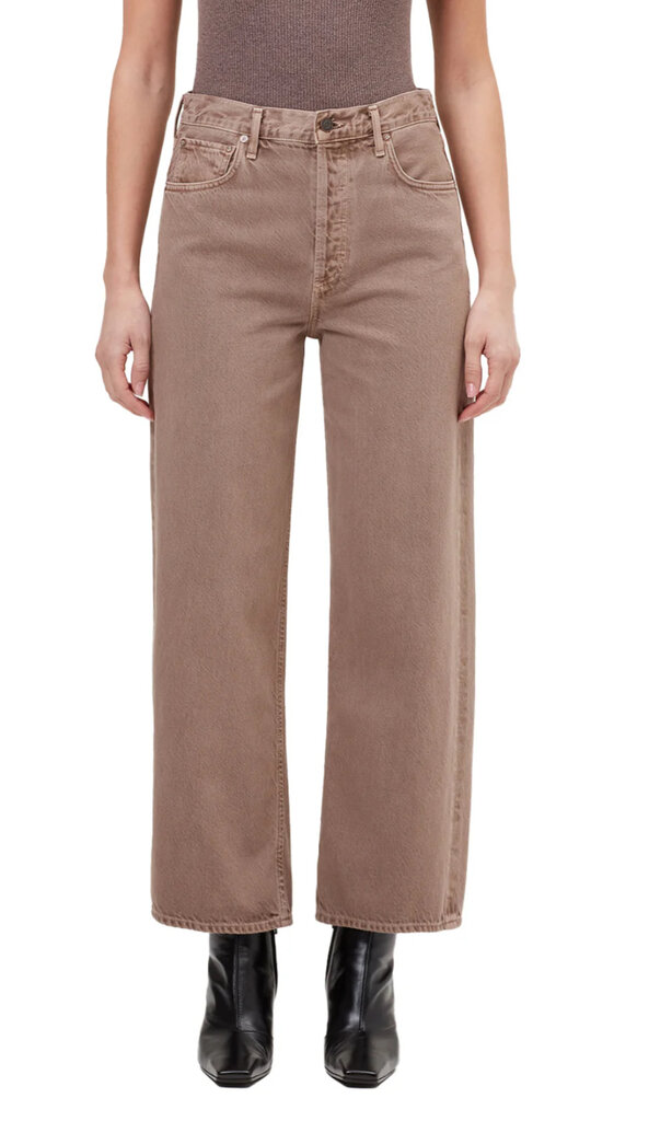 Non-stretch denim brings structure to high-rise, wide-leg jeans cast in a unique wash and finished with ankle-grazing hems.