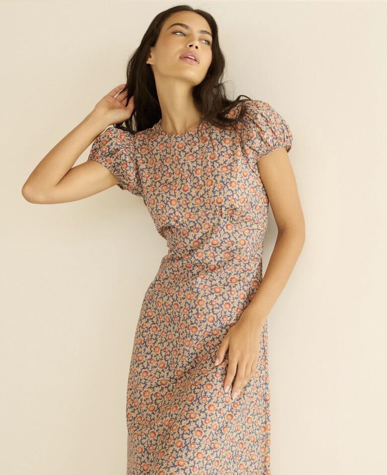 The Rhodia Dress is made from midweight organic cotton voile printed with our Jardin du Soleil floral, a playful print inspired by antique French textiles.