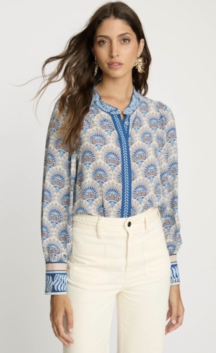 The Riley Boho Top by Caballero features the signature Boho Deco print with a relaxed silhouette and refined detailing. An effortless statement blouse that transitions easily from day to night.