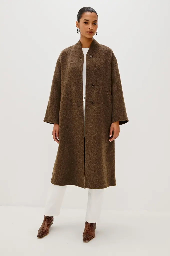 The Roland is a fully lined coat in a heavyweight wool blend, giving it a casual feel perfect for everyday wear. It has a funnel collar, self-tie belt, and a flattering A-line fit.